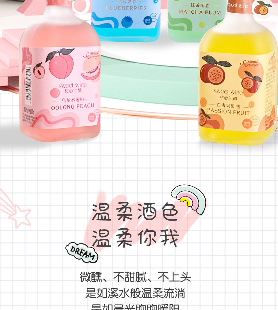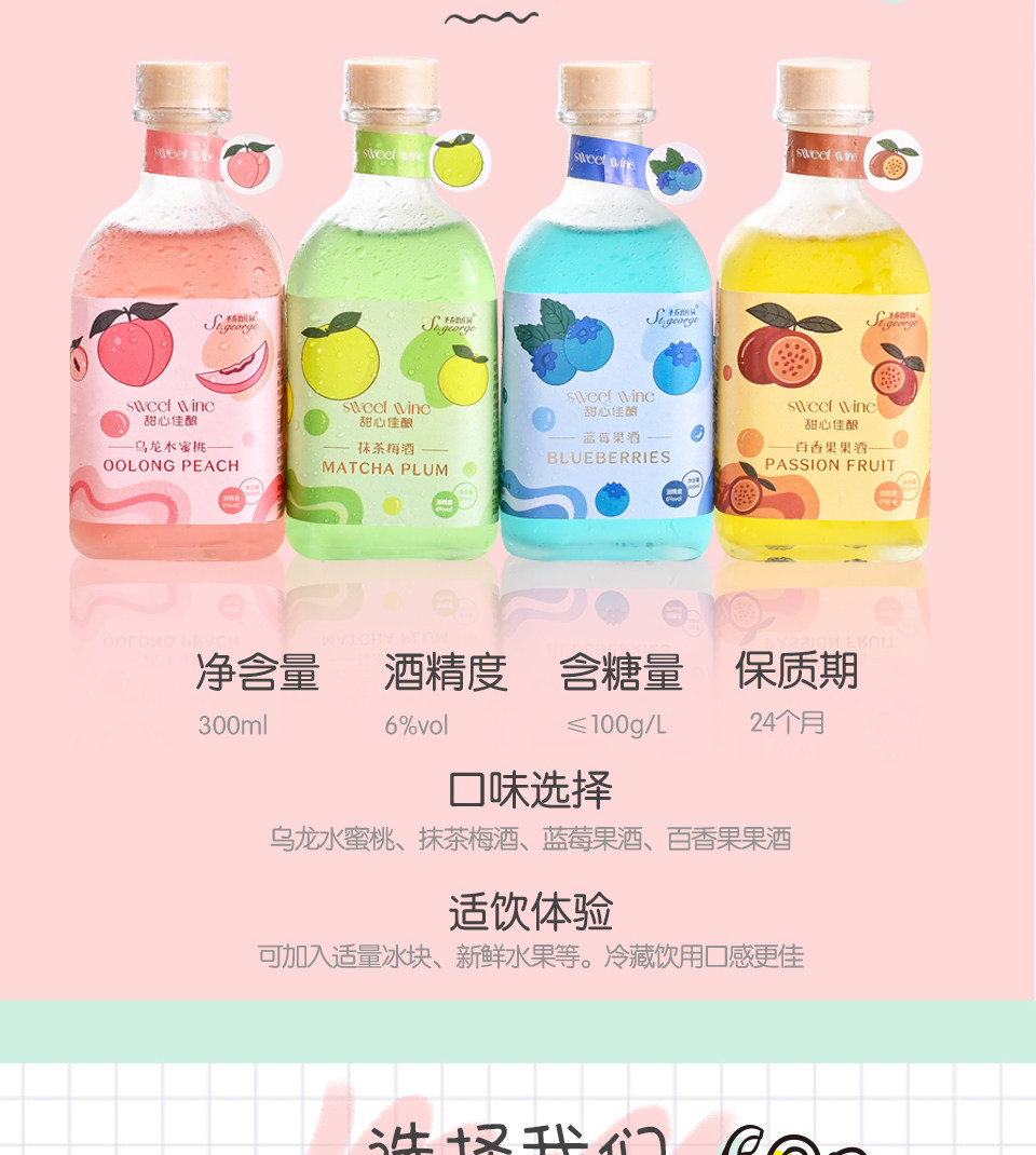 | Вкус: | 1 бутылка персикового вина улун [квадратная бутылка], 1 бутылка сливового вина матча [квадратная бутылка], 1 бутылка вина из маракуйи [квадратная бутылка], 1 бутылка черничного фруктового вина [квадратная бутылка], 4 бутылки (по одной бутылке на каждый вкус) [квадратная бутылка] |