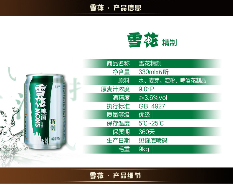Снежинка изысканного пива 330 мл*6 прослушивание/группа варенья пиво высокое качество свежего выбора риса отличная коллекция