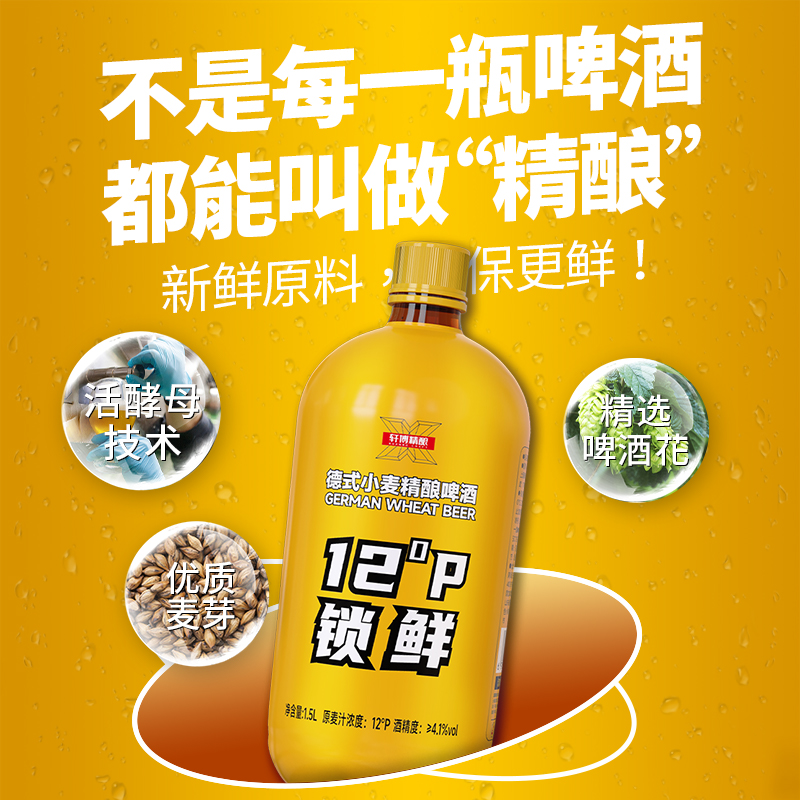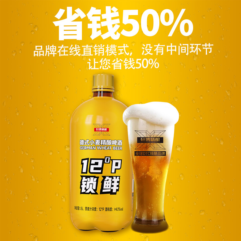 [Выбор -эффективность затрат] Xuanbo 12 ° P Выбранная немецкая пшеница 1,5 л Свежее свежий крест -литье пиво