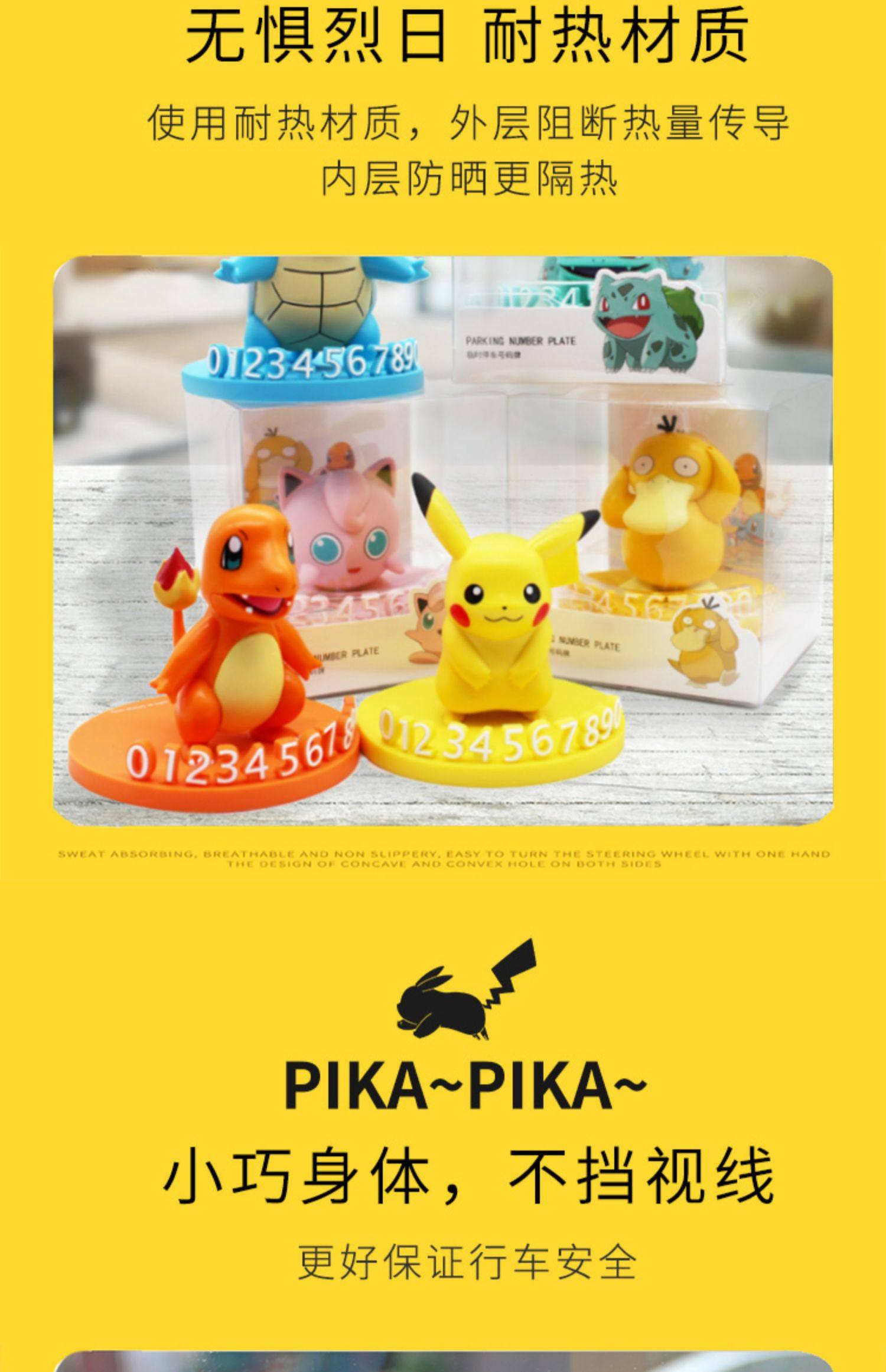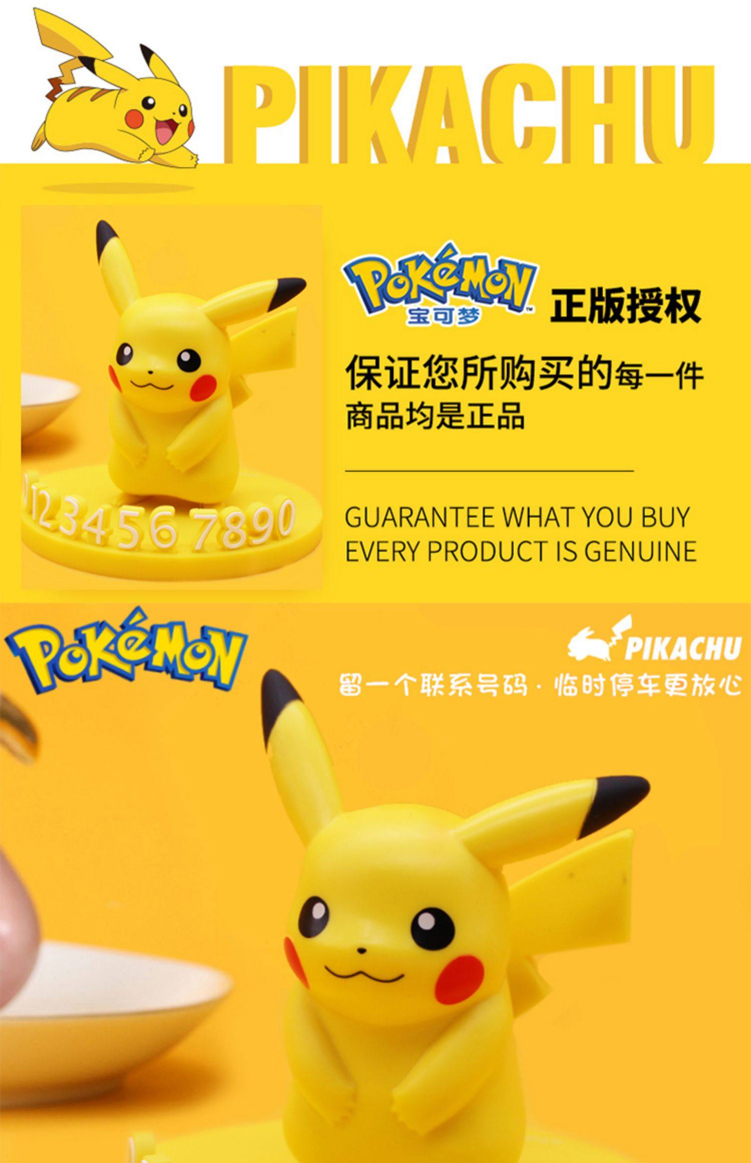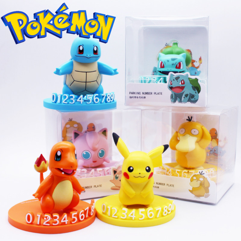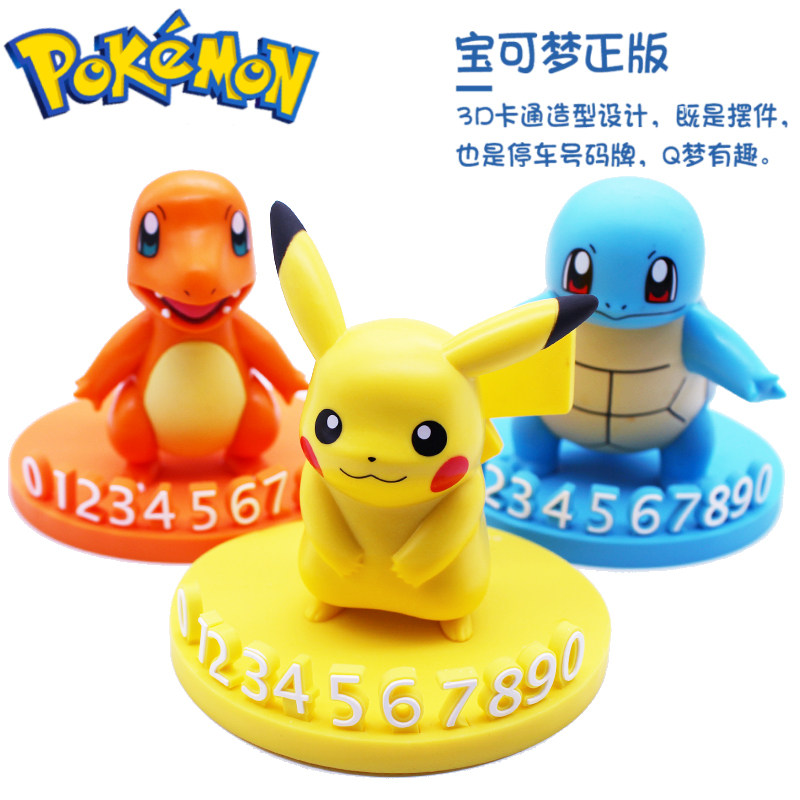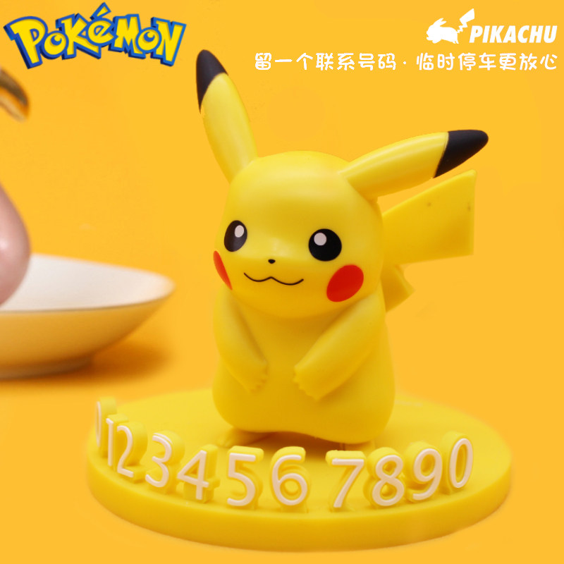 Подлинный Pokémon Pikachu временно останавливает и перемещает автомобиль и перемещает номер телефона и куклу Carul Car Caar Creative Dornments