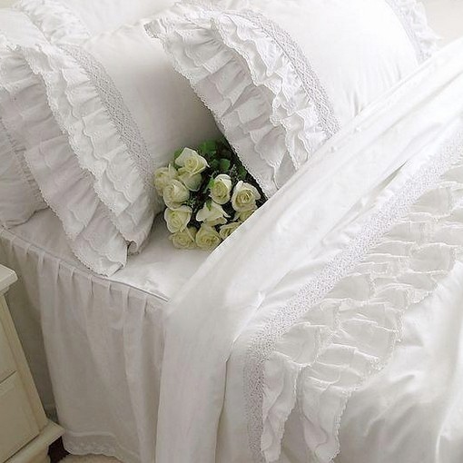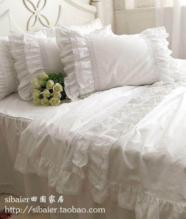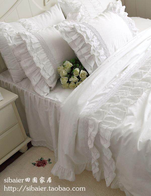 Белый хлопковый пододеяльник, покрывало, комплект, в корейском стиле, кружевное платье, 4 предмета