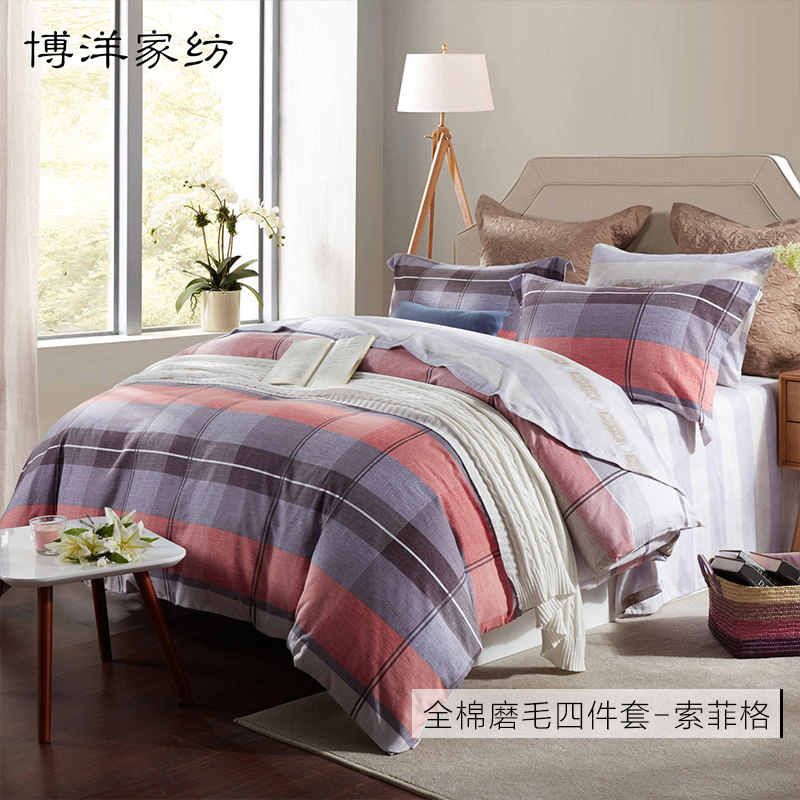 博洋 Хлопковый комплект, удерживающая тепло простыня, 4 предмета, простой и элегантный дизайн, увеличенная толщина, 1.8м, постельные принадлежности