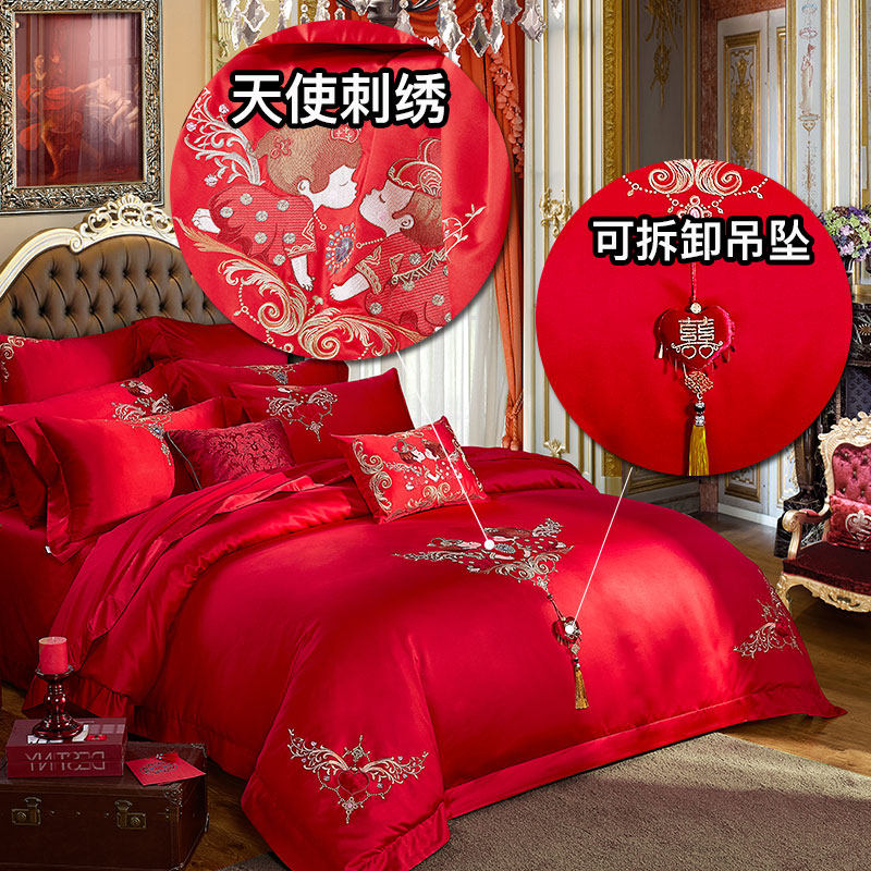 博洋 Комплект, красное покрывало, 4 предмета, с вышивкой