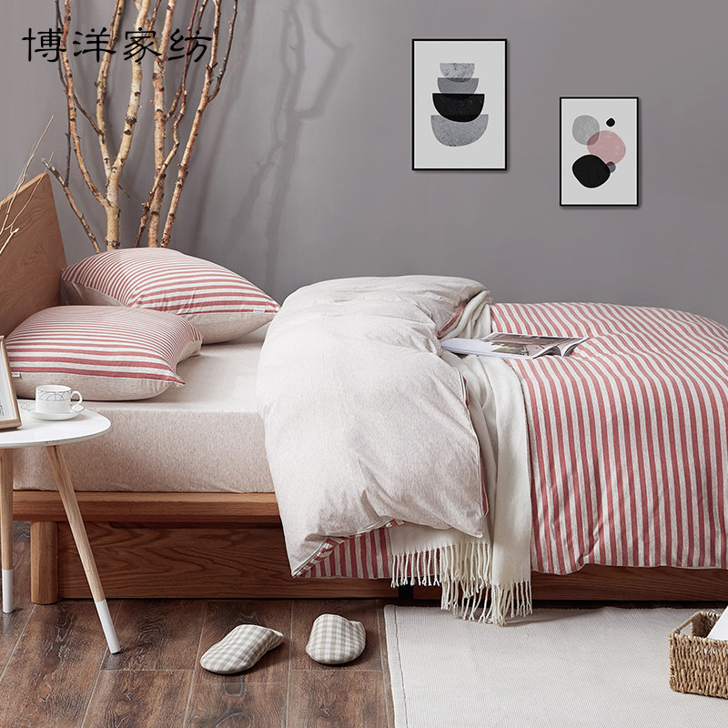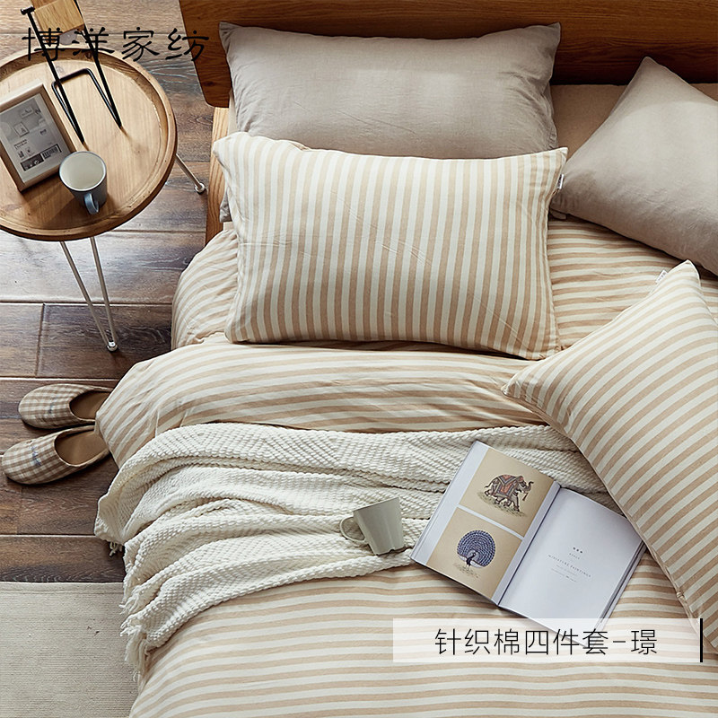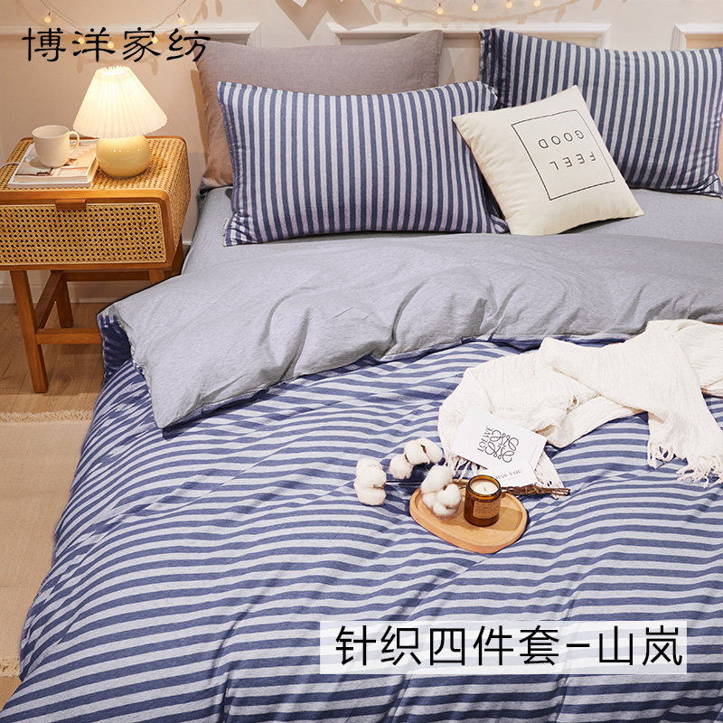 博洋 Демисезонный хлопковый трикотажный комплект, хлопковая зимняя простыня, покрывало, зимний пододеяльник, 4 предмета, постельные принадлежности