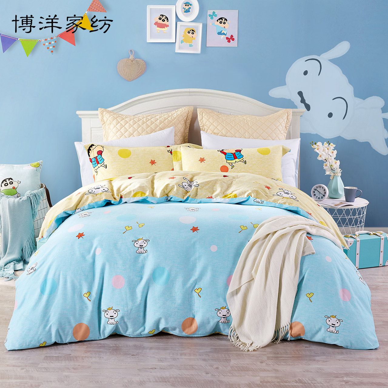 博洋 Комплект, мелки, мультяшная зимняя простыня, хлопковый пододеяльник, хлопковое зимнее покрывало, 4 предмета