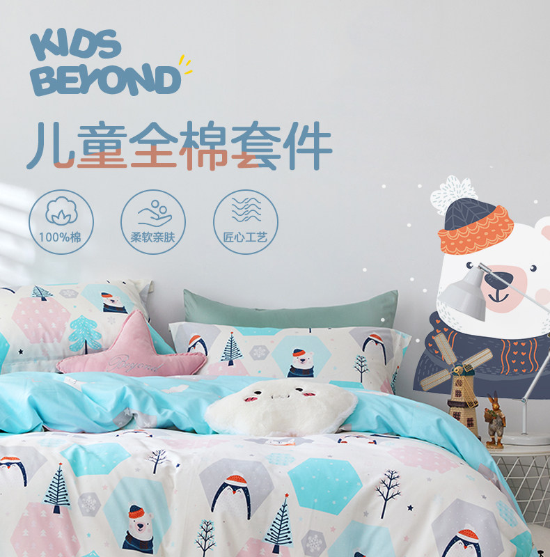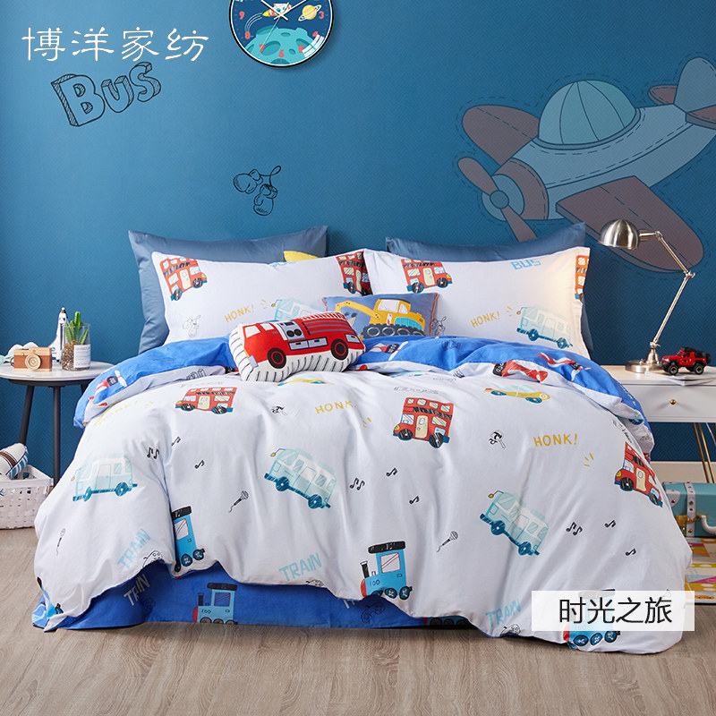 博洋 Детский хлопковый комплект, мультяшное покрывало, пододеяльник, хлопковая простыня, 4 предмета, 3 предмета