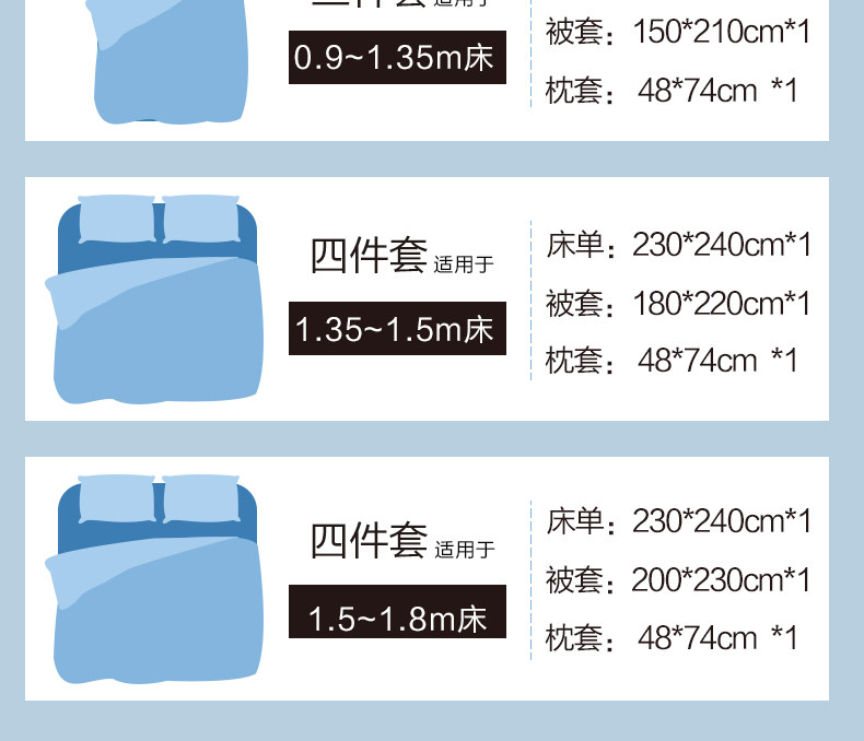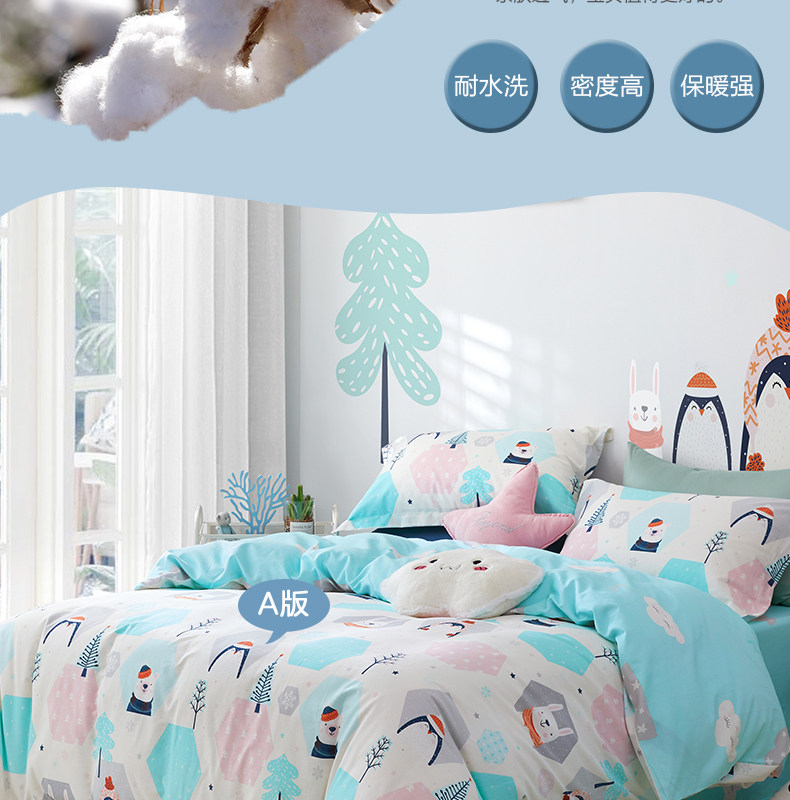 | Ширина кровати: | Три -набор для кровати применимо к 1,2 млн. С 150*210 стеганым одеялом, Четырехэтажный набор применимо к 1,5 -метровым кроватям и рекомендуется с 200*230 одеялом, Набор из четырех частей применим к 1,8-2M-кроватям, с 220*240 ядрами |