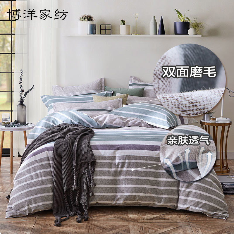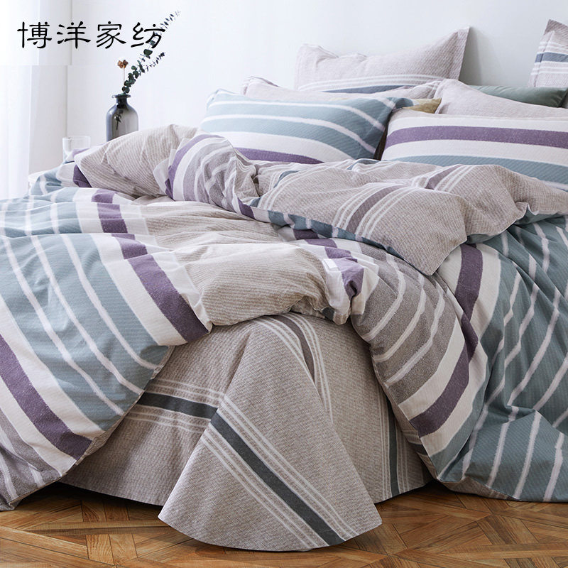 博洋 Комплект, хлопковое одеяло, мужской хлопковый пододеяльник, простыня, 4 предмета, простой и элегантный дизайн, 1.8м