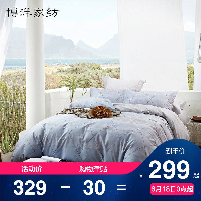 博洋 Летнее покрывало, хлопковый комплект, простыня, пододеяльник, 4 предмета, простой и элегантный дизайн, популярно в интернете