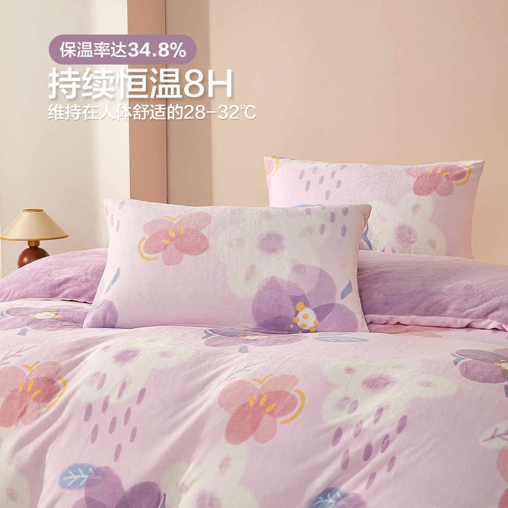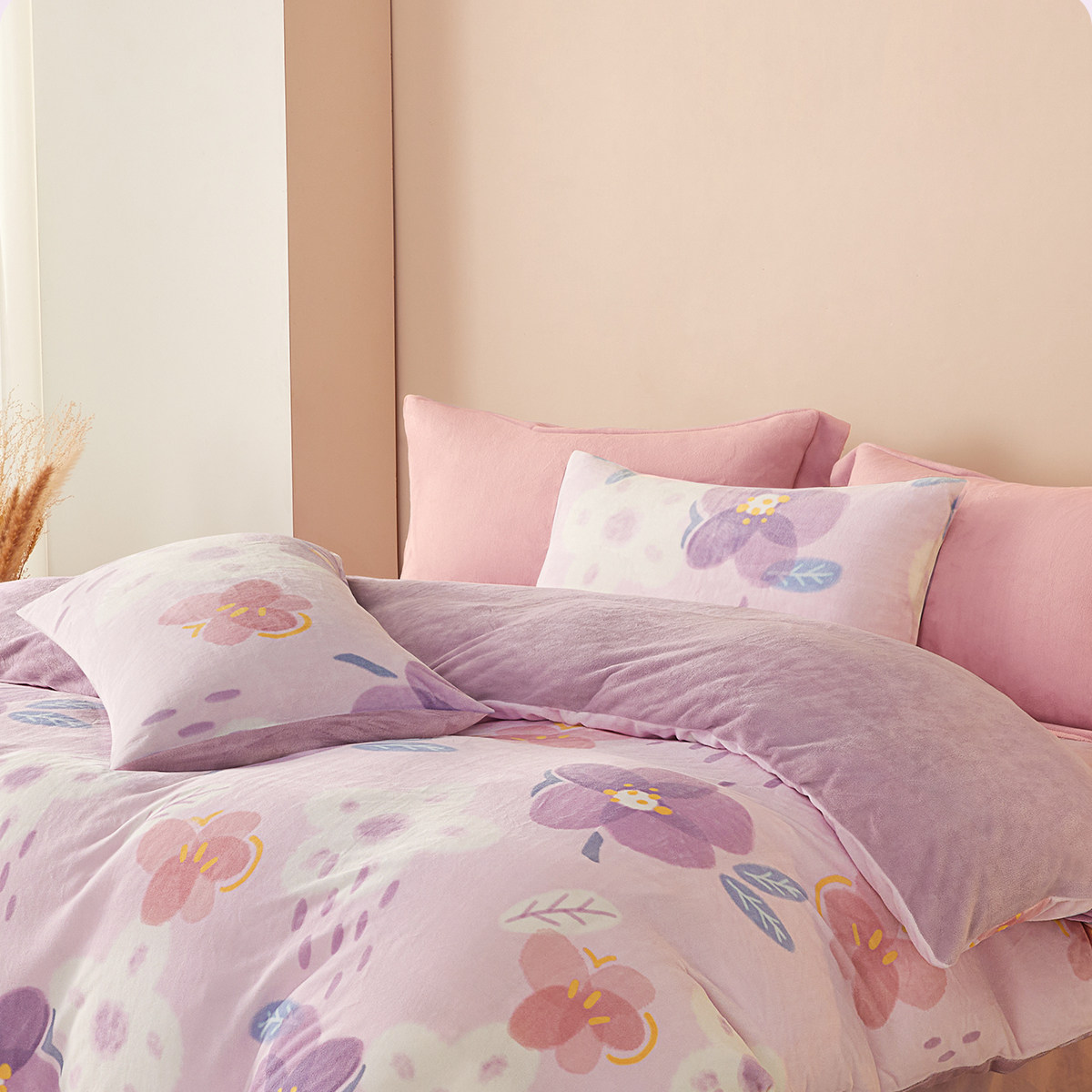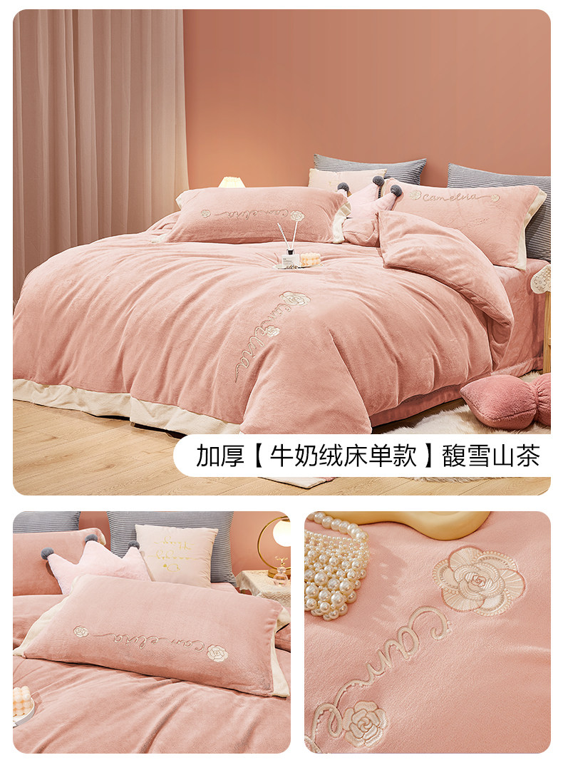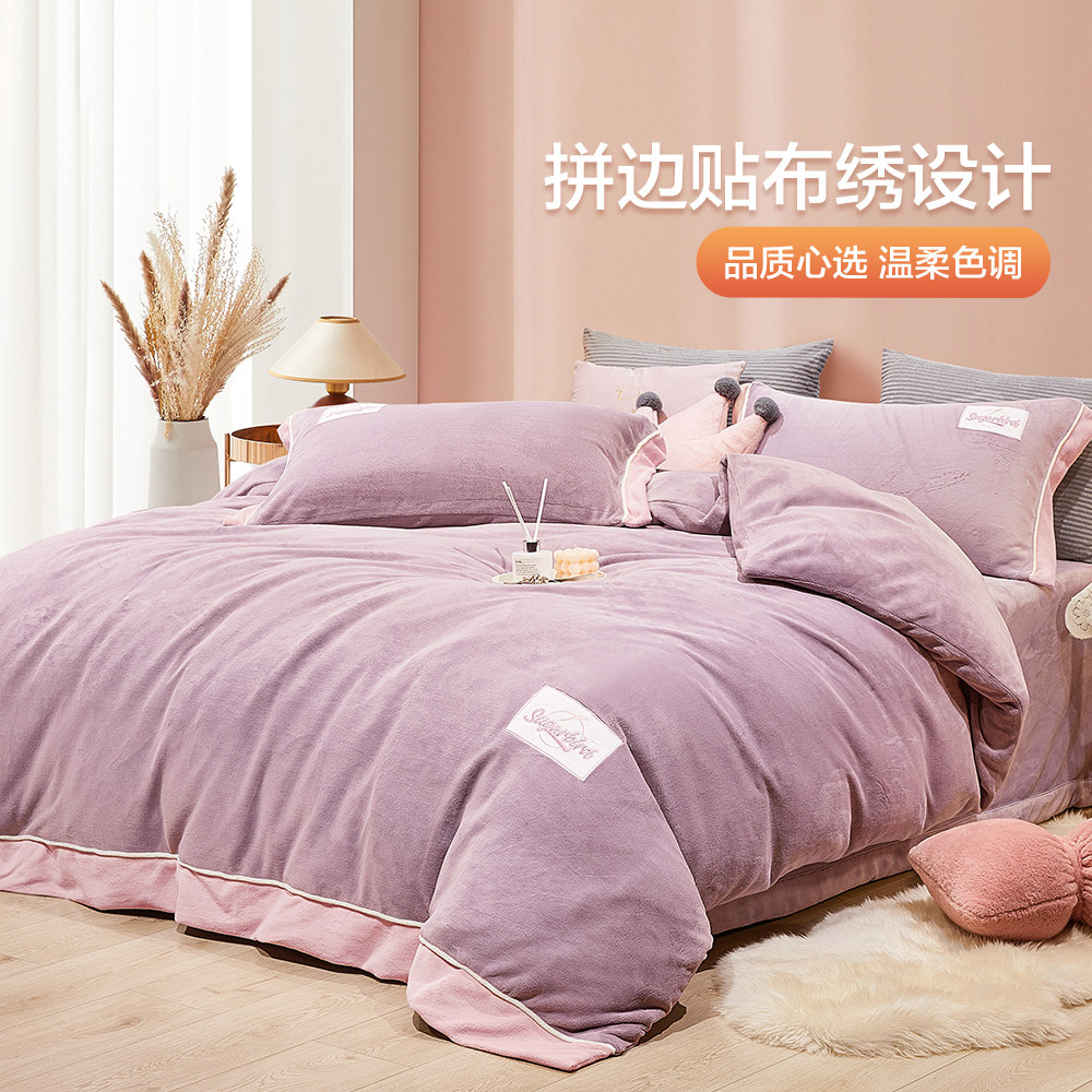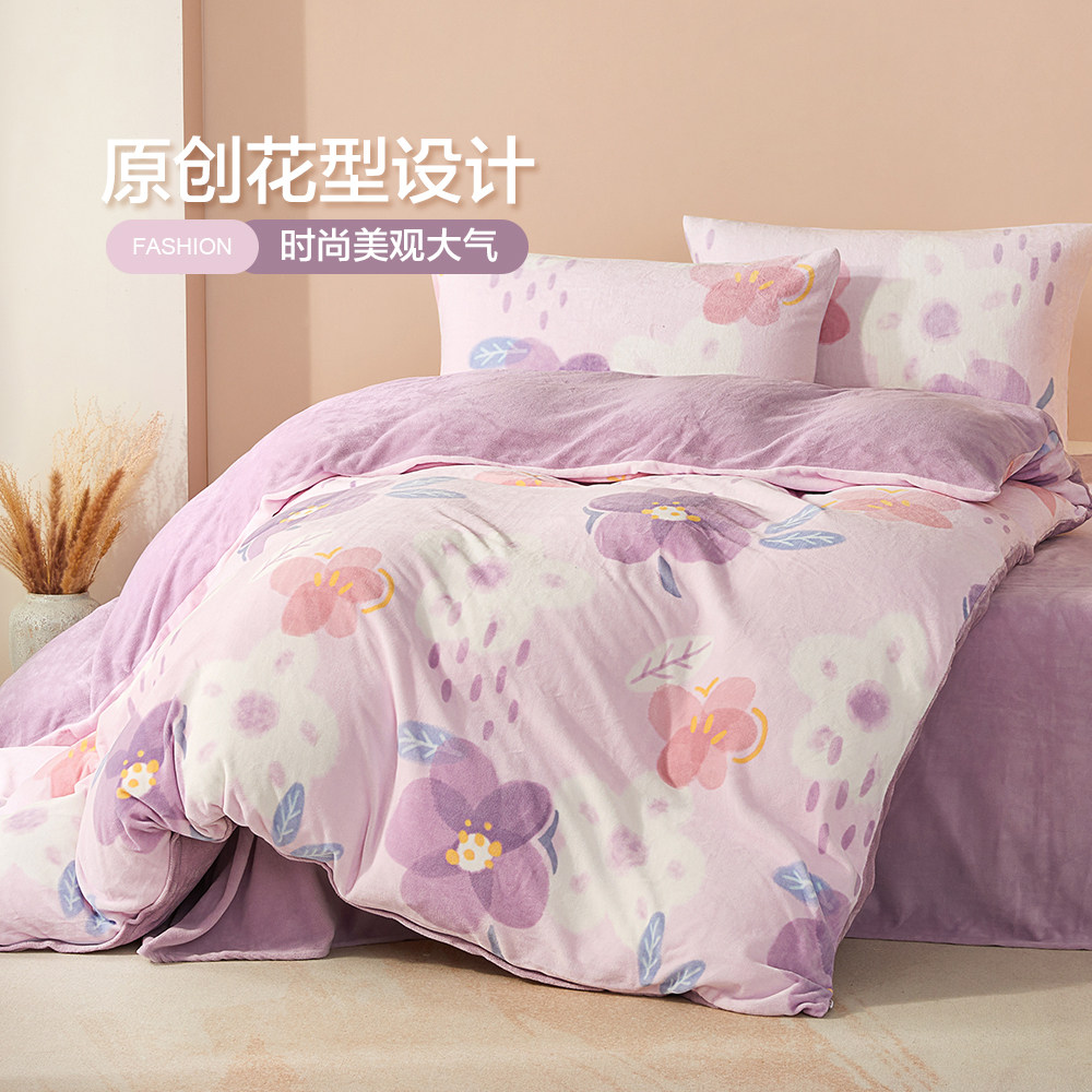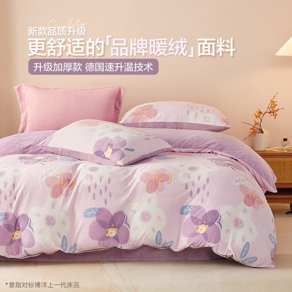 博洋 Бархатные джинсы с начесом, коралловый комплект, бархатный фланелевый пододеяльник, двусторонное замшевое зимнее покрывало, 4 предмета