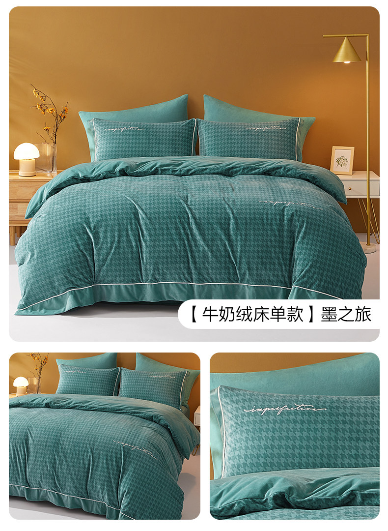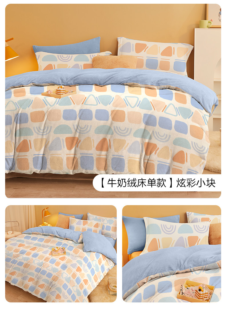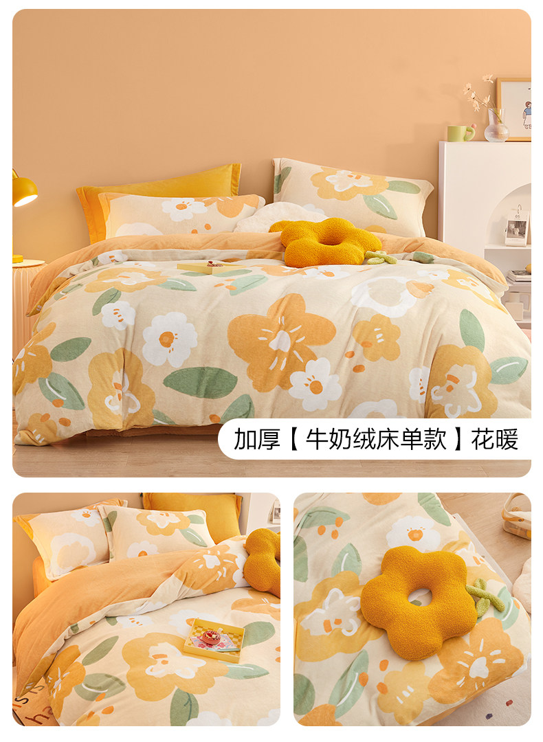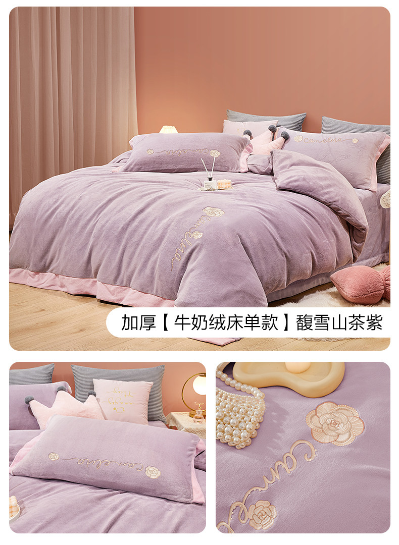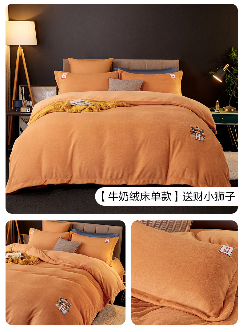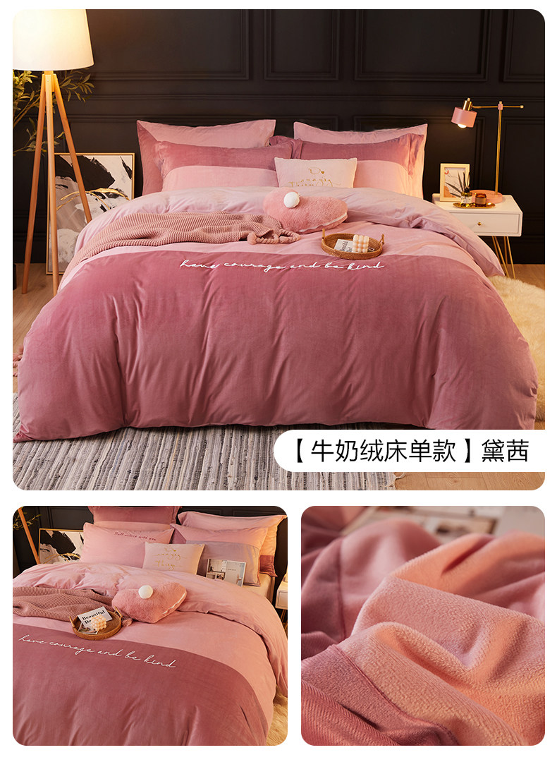 博洋 Бархатные джинсы с начесом, коралловый комплект, бархатный фланелевый пододеяльник, двусторонное замшевое зимнее покрывало, 4 предмета