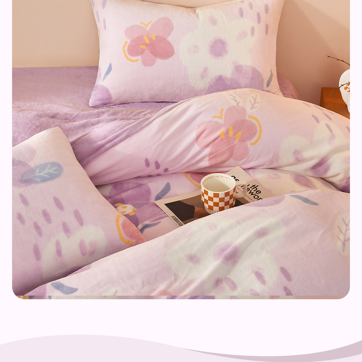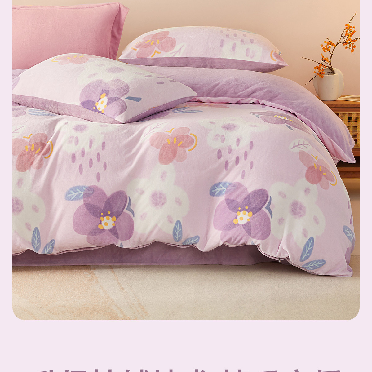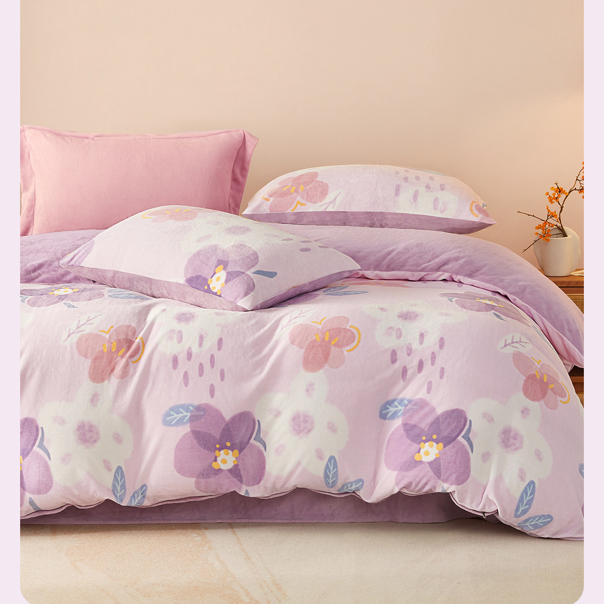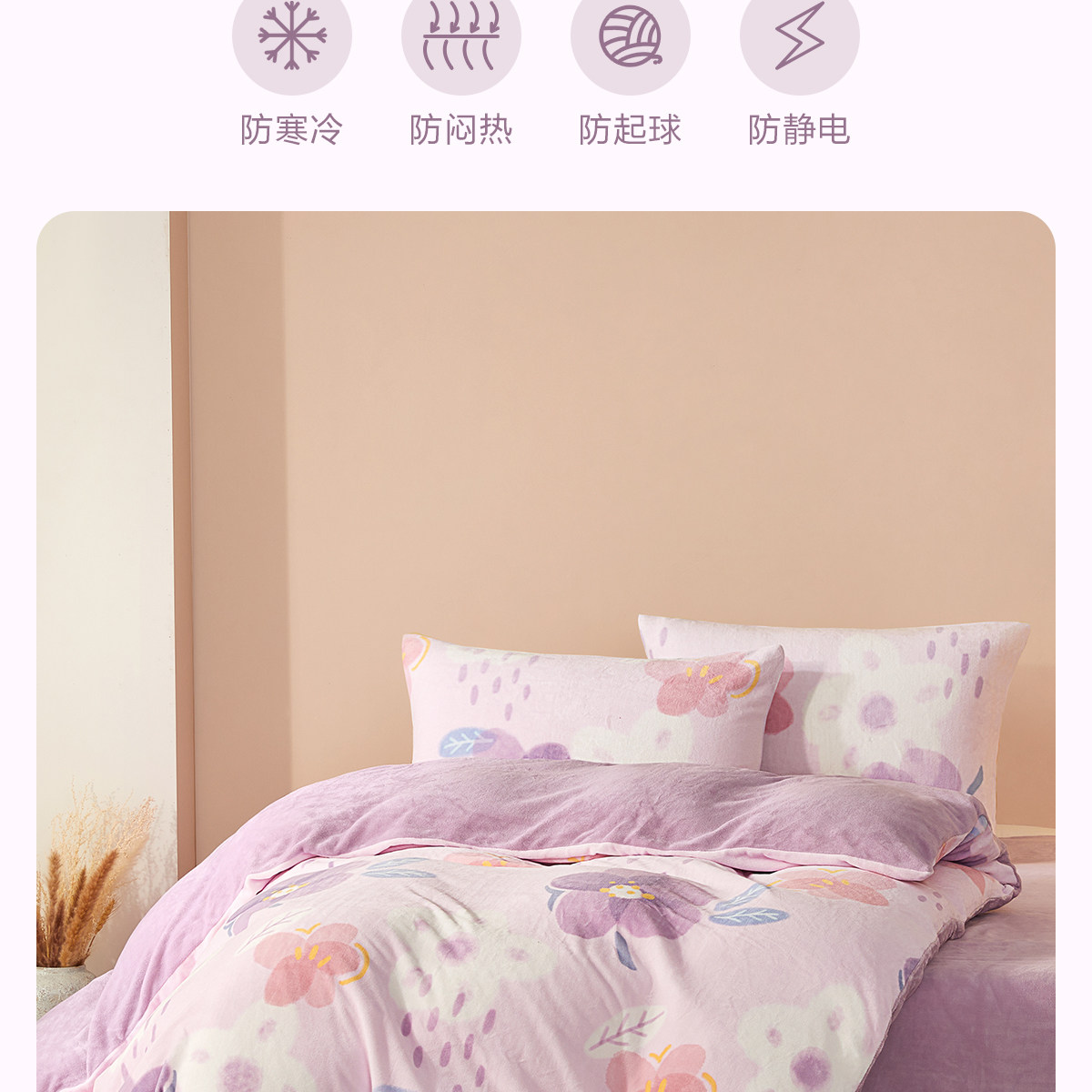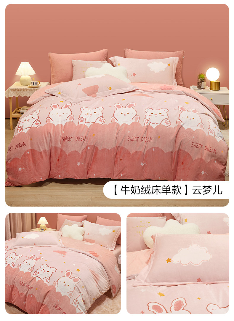 博洋 Бархатные джинсы с начесом, коралловый комплект, бархатный фланелевый пододеяльник, двусторонное замшевое зимнее покрывало, 4 предмета