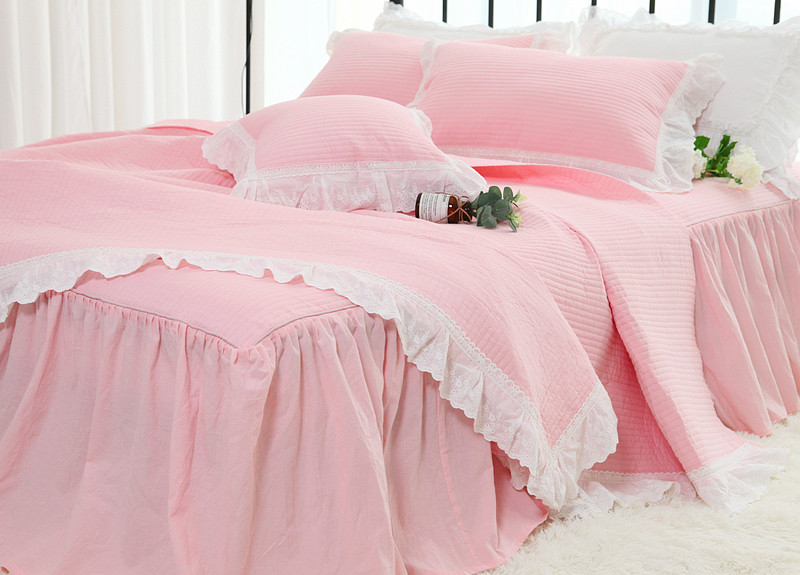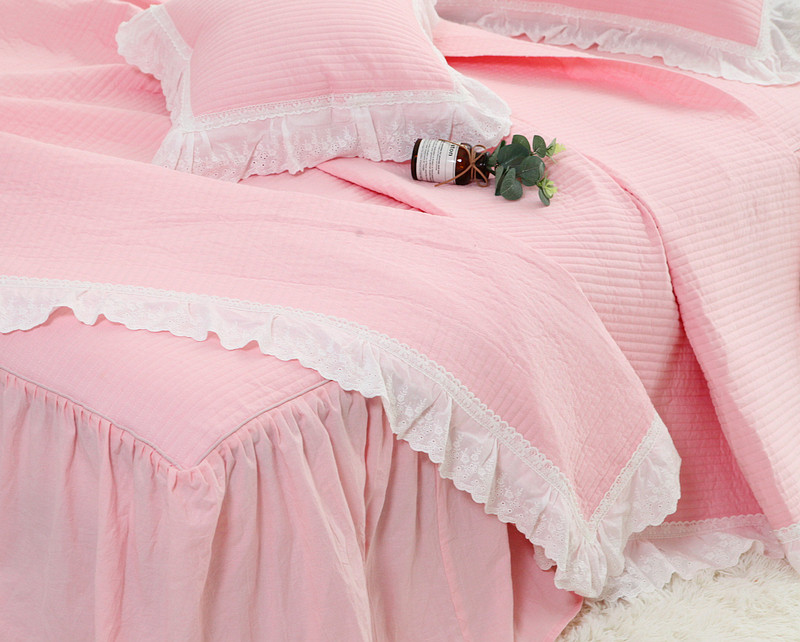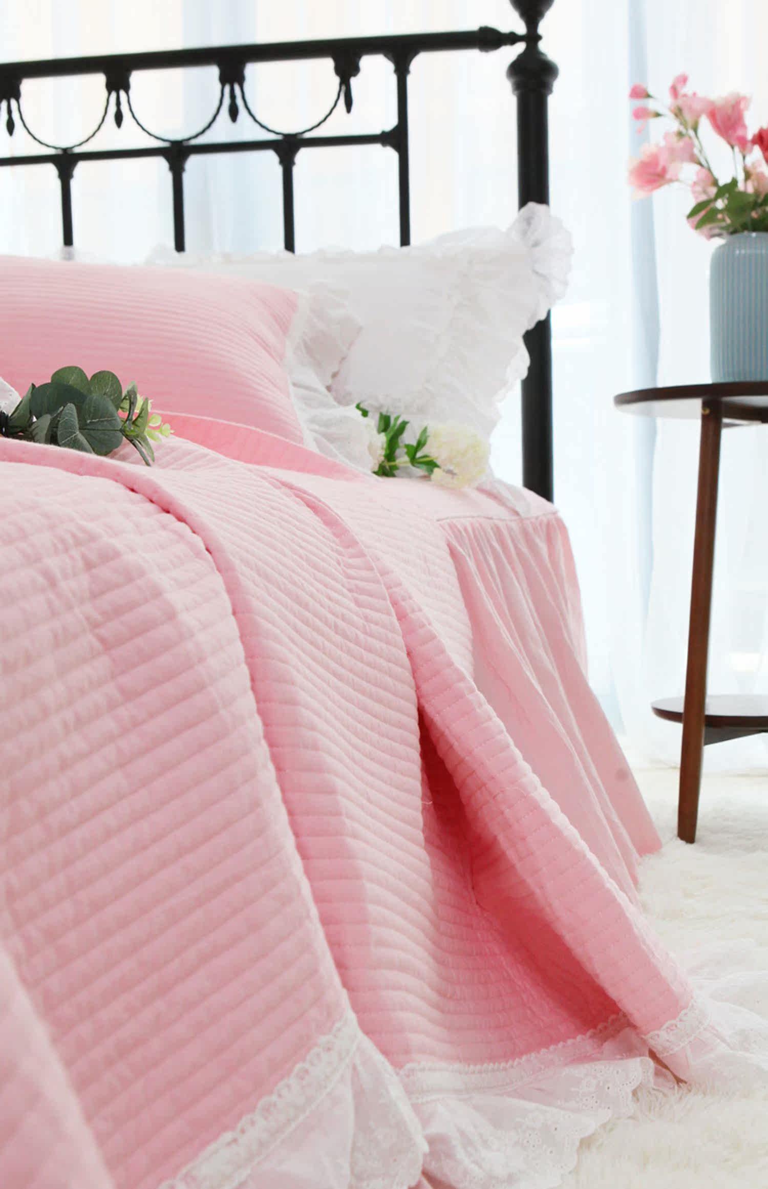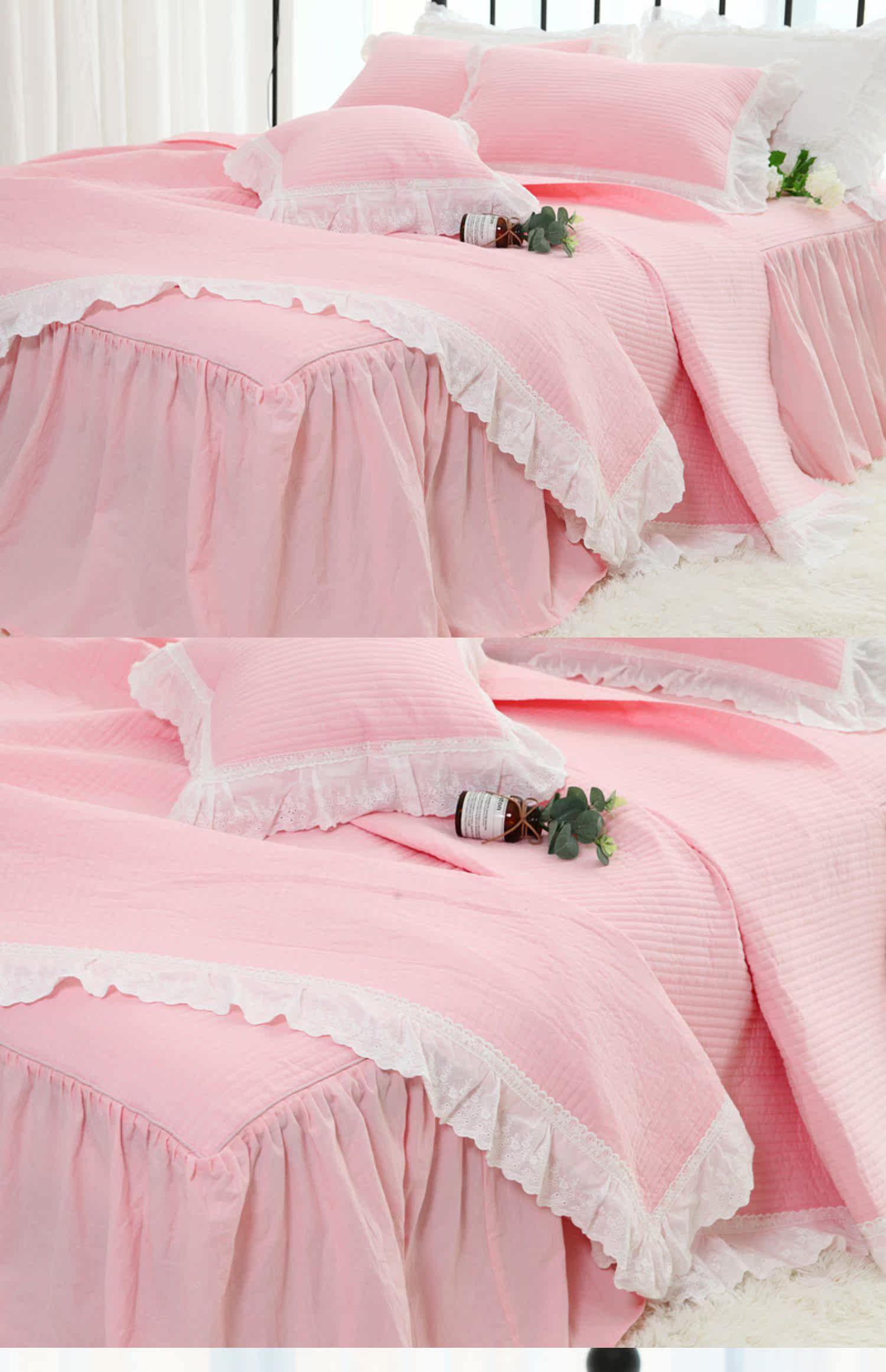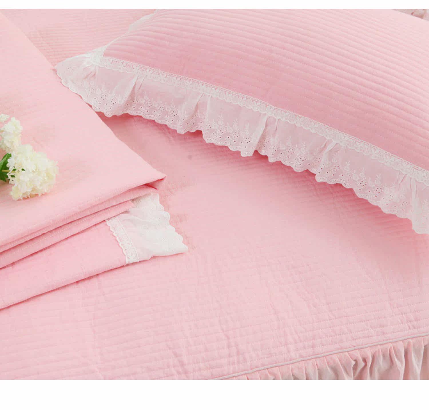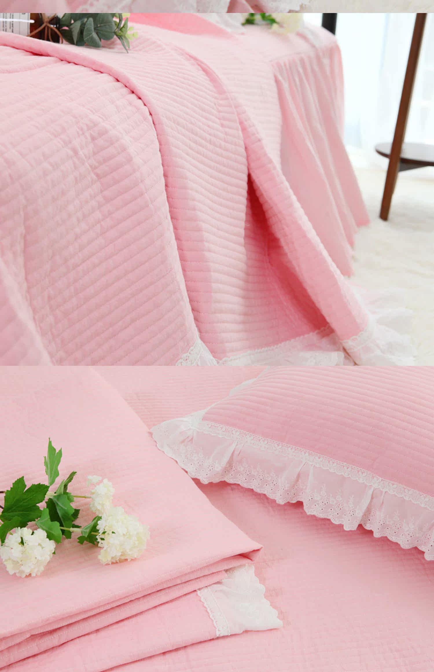 Корейское розовое хлопковое стеганое летнее одеяло, комплект, в корейском стиле, увеличенная толщина, 3 предмета