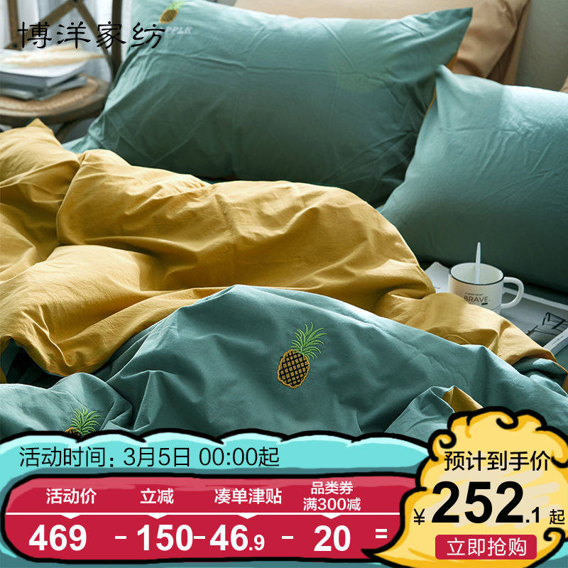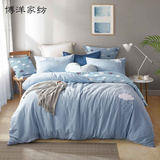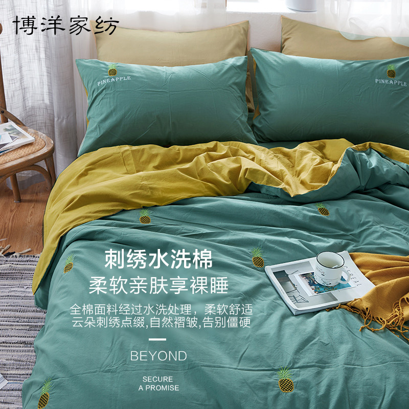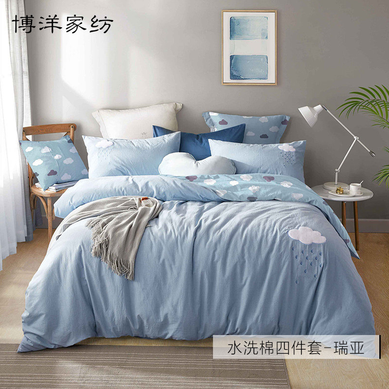 博洋 Комплект, хлопковое покрывало, 4 предмета, простой и элегантный дизайн, с вышивкой