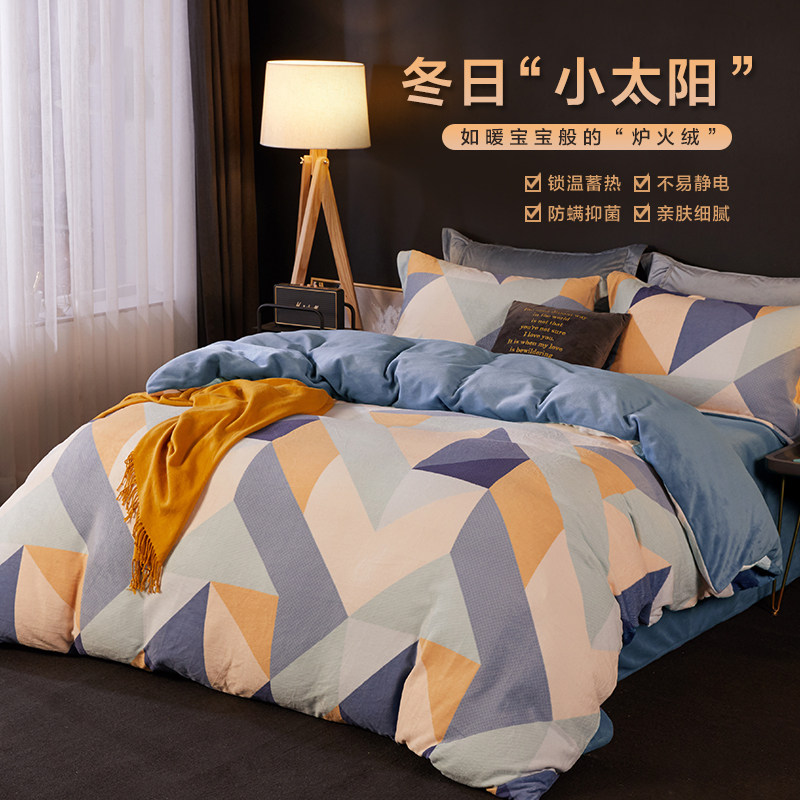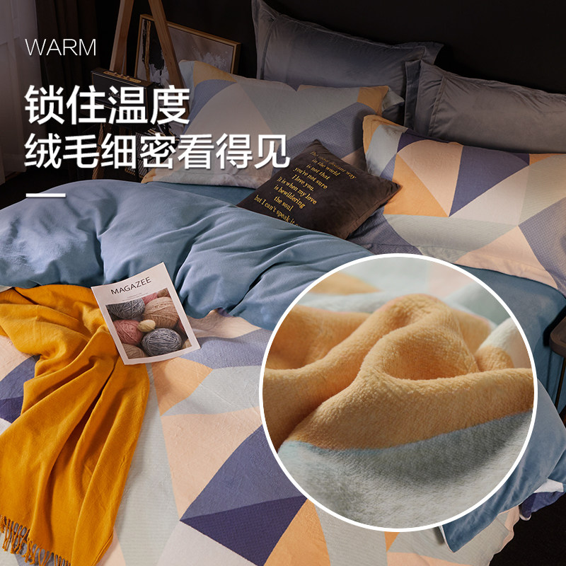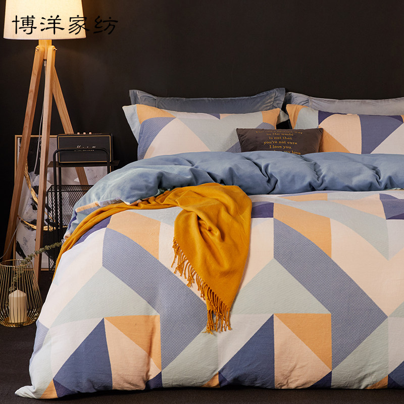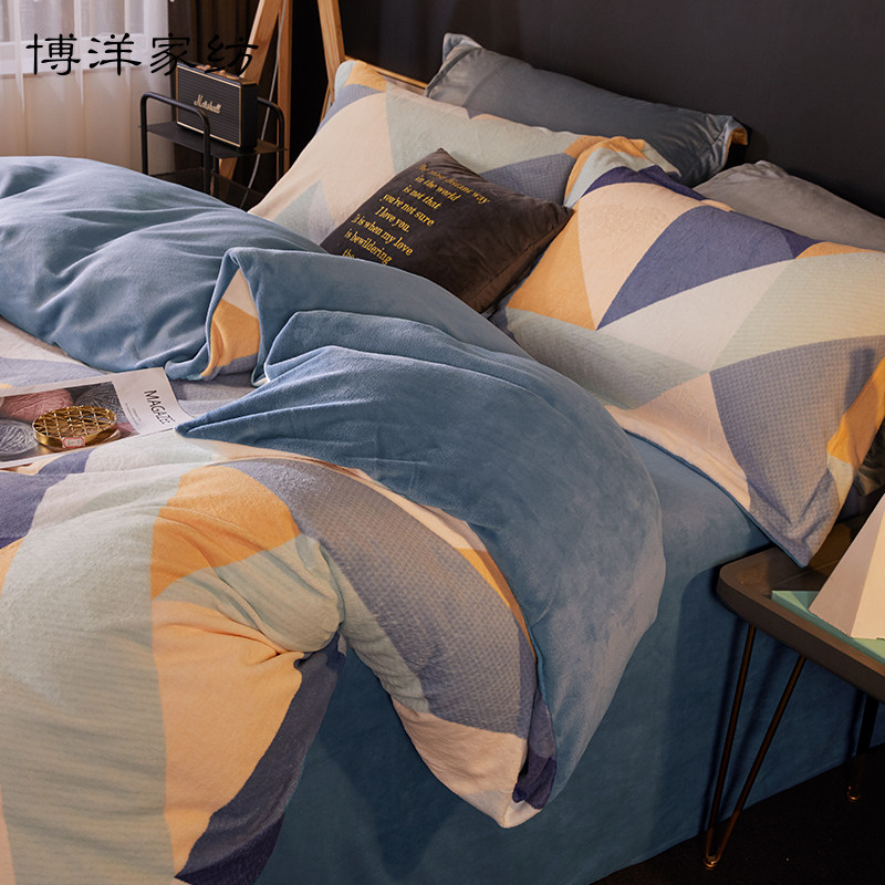博洋 Коралловый демисезонный комплект, фланелевый двусторонний пододеяльник, флисовое покрывало, 4 предмета, простой и элегантный дизайн