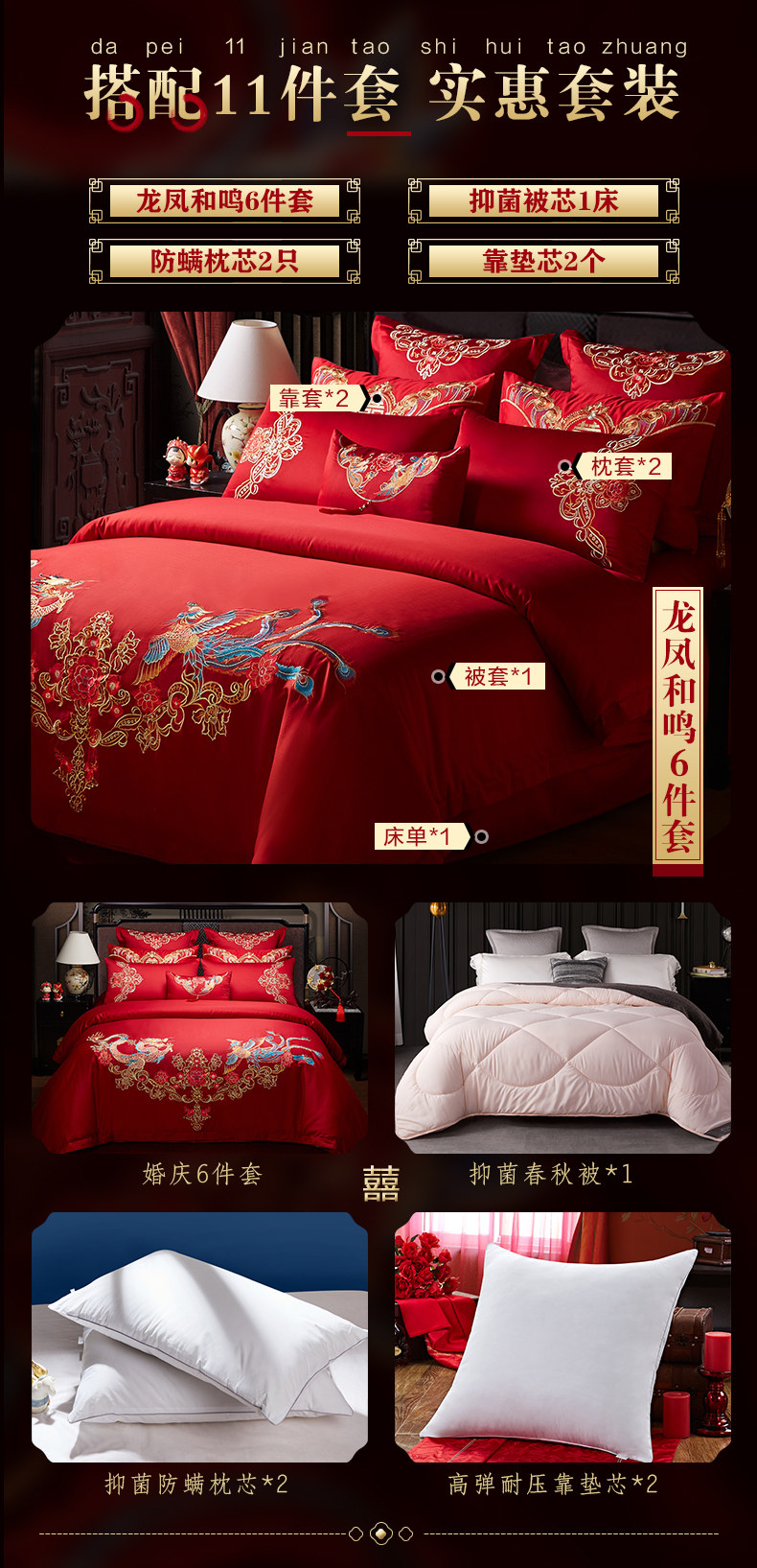 博洋 Хлопковый праздничнный комплект, 4 предмета, 60 шт, дракон и феникс, постельные принадлежности