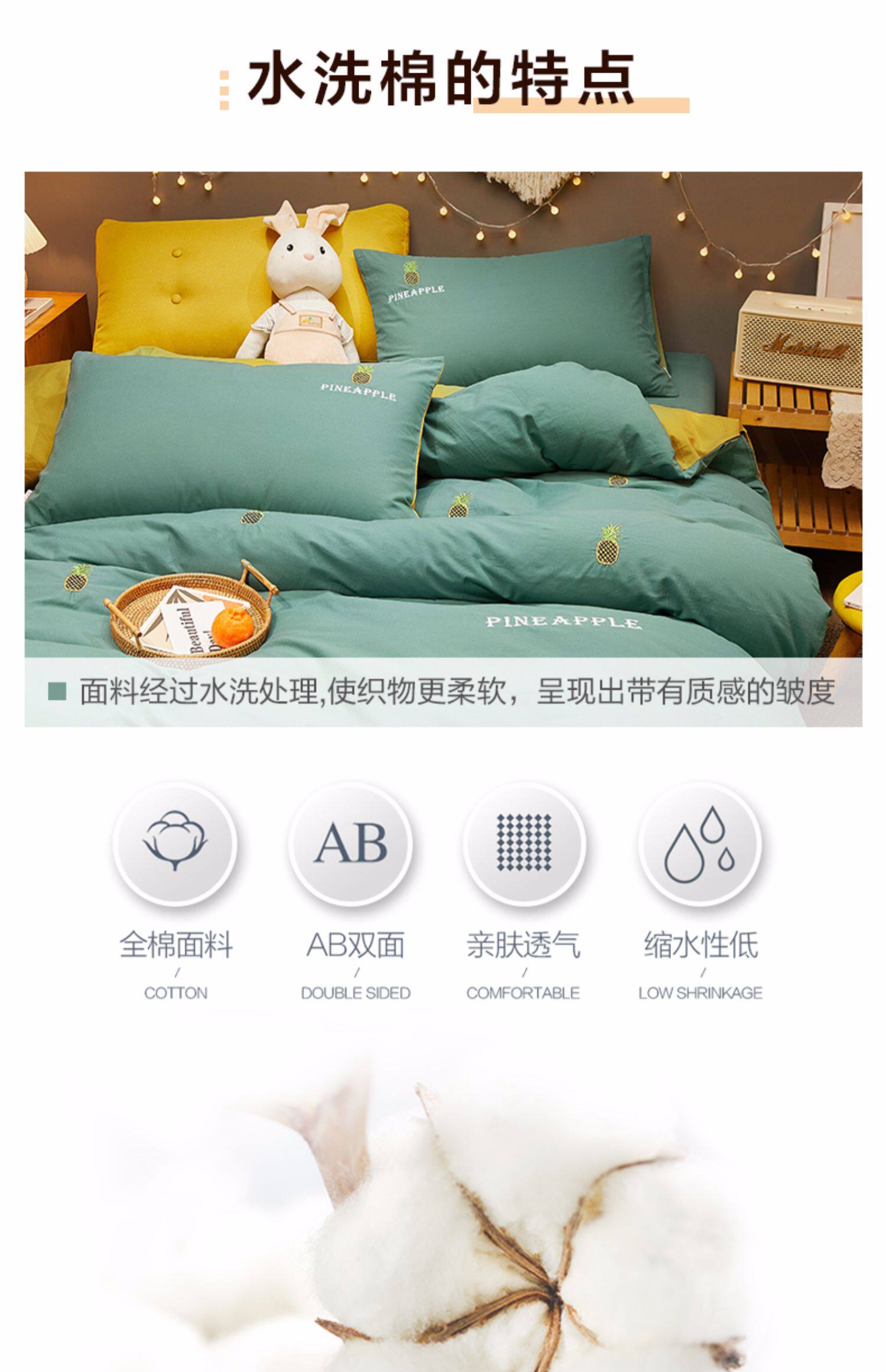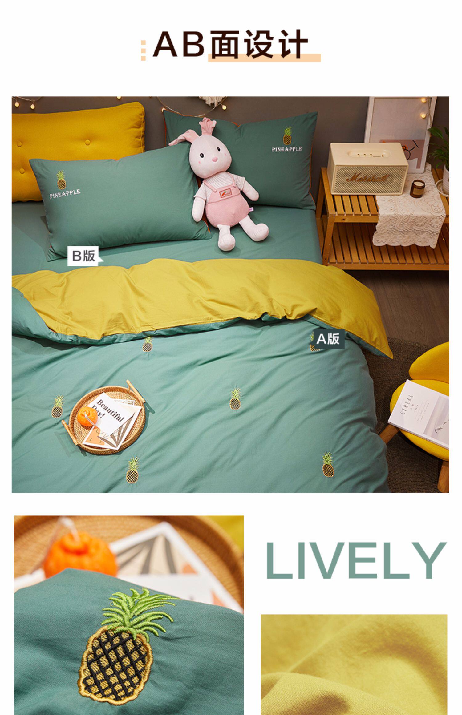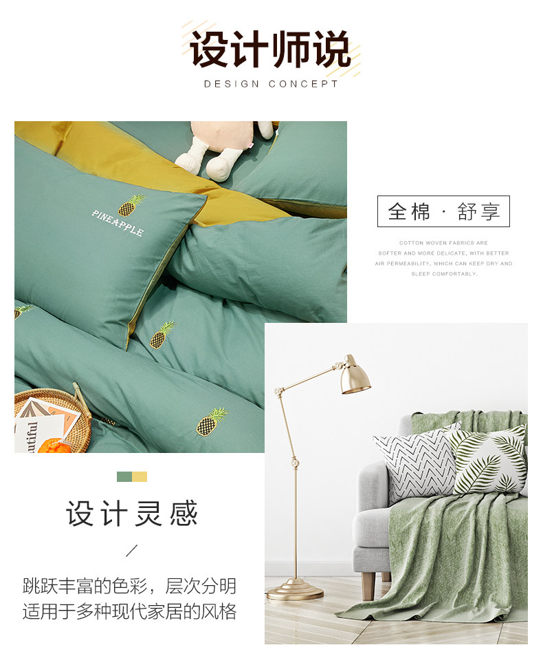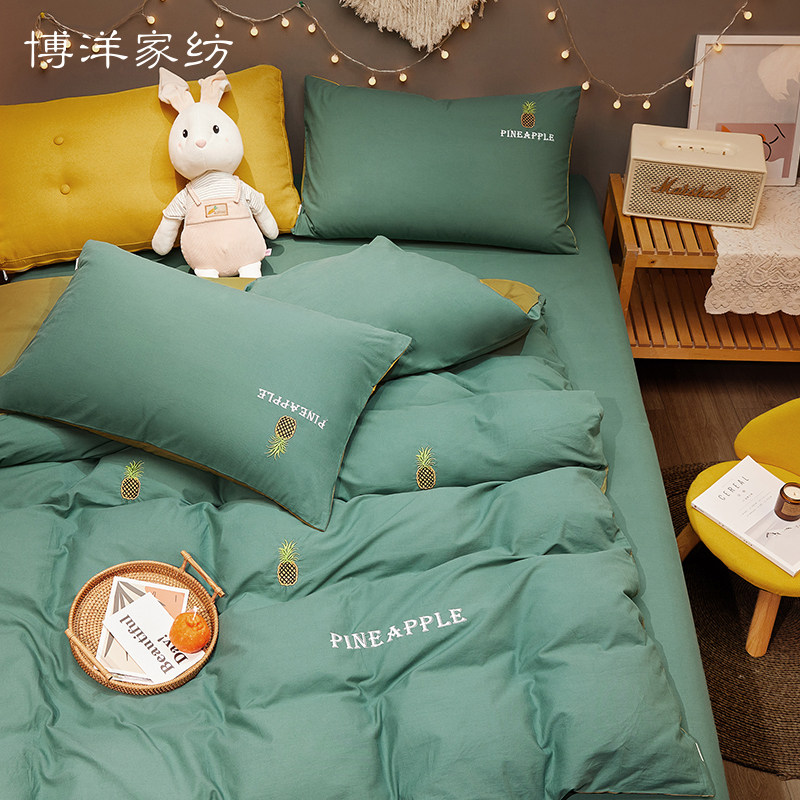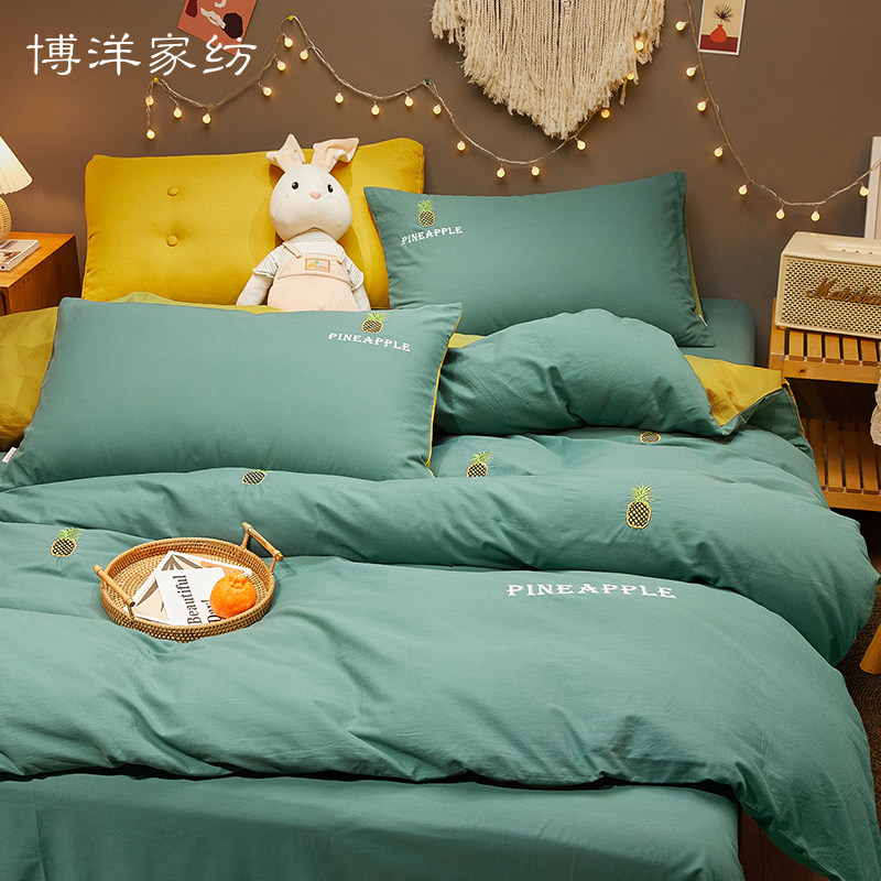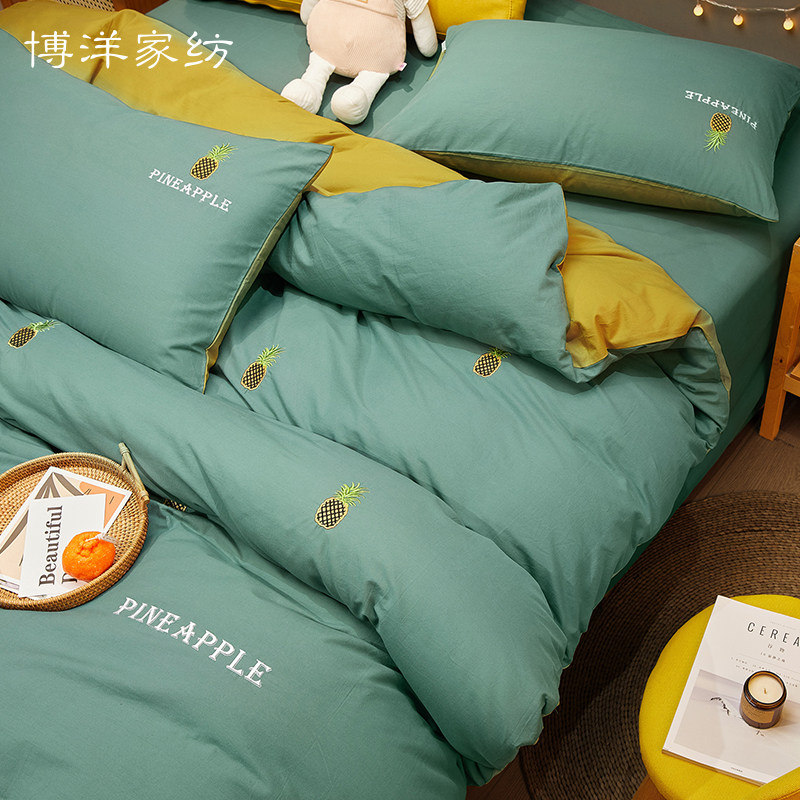 博洋 Хлопковый комплект, брендовое покрывало, летнее одеяло, пододеяльник, с вышивкой, 4 предмета, простой и элегантный дизайн