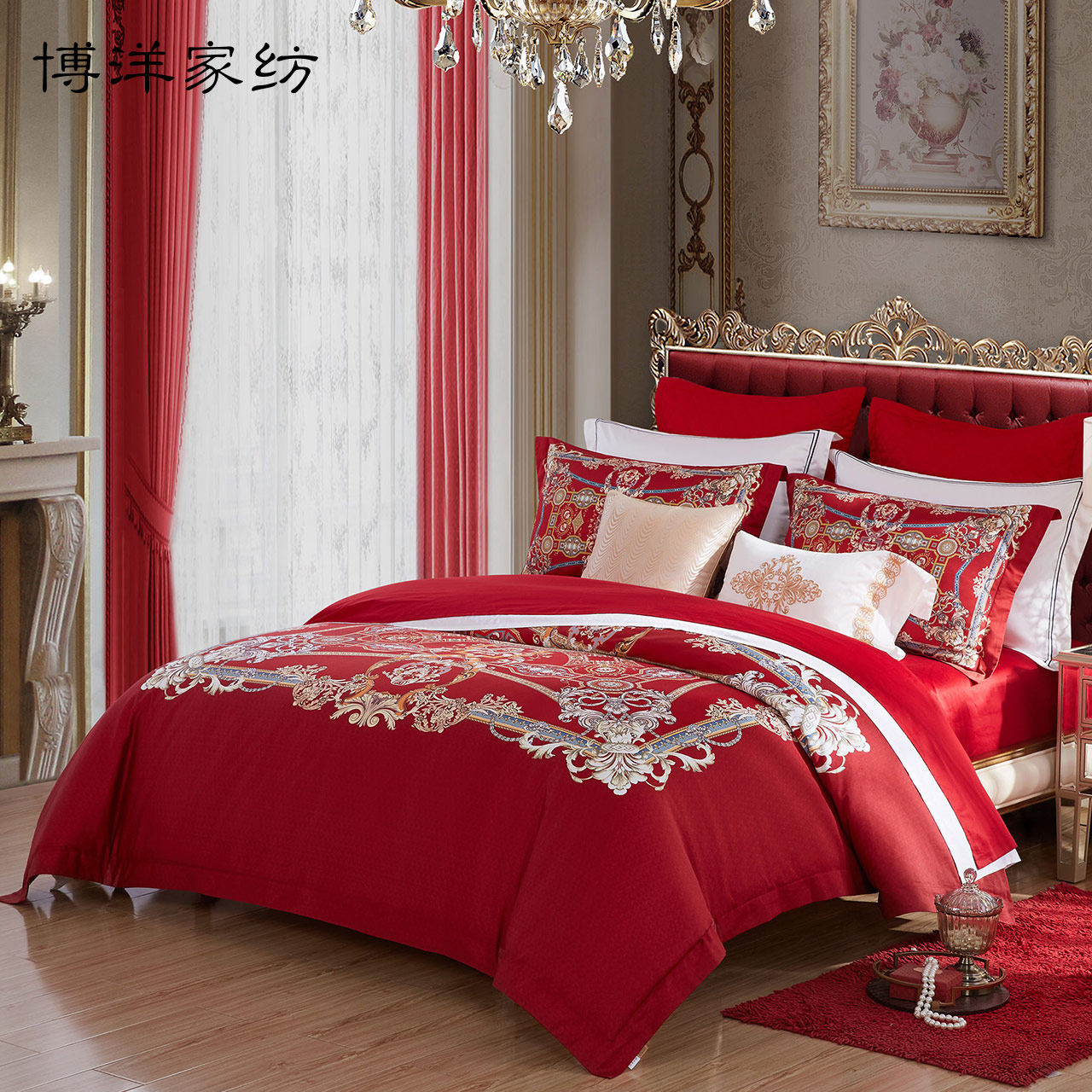 博洋 Хлопковый комплект, красный пододеяльник, покрывало, 60 шт, 4 предмета