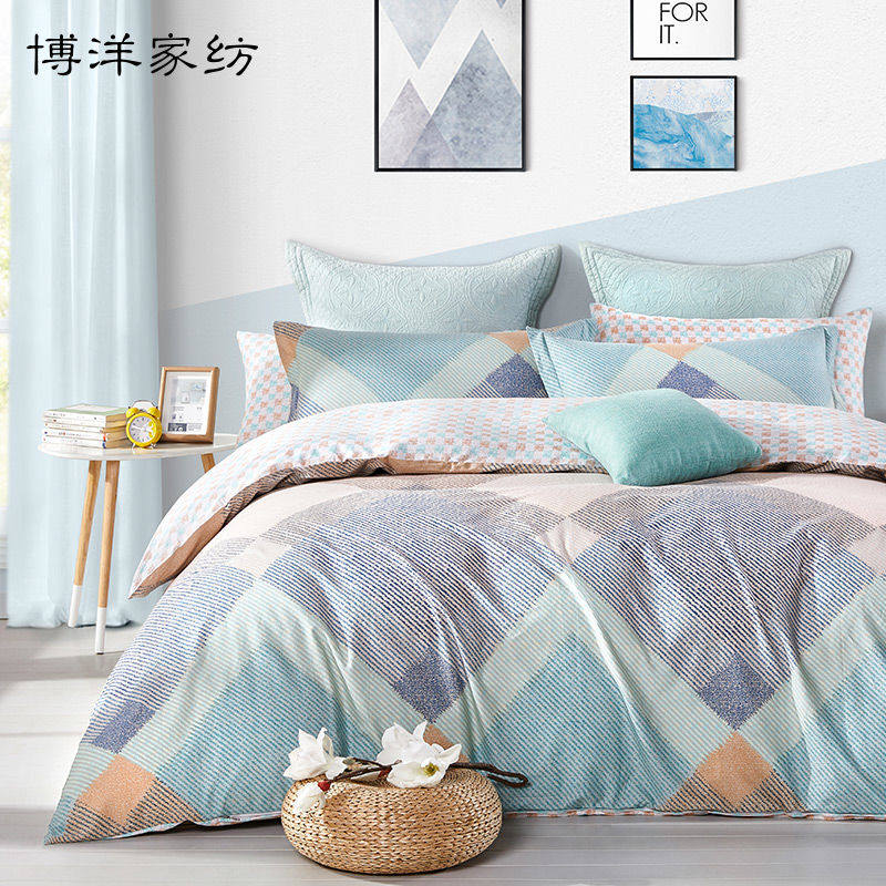 博洋 Хлопковый комплект, хлопковая простыня, пододеяльник, демисезонное зимнее покрывало, 4 предмета, простой и элегантный дизайн, скандинавский стиль