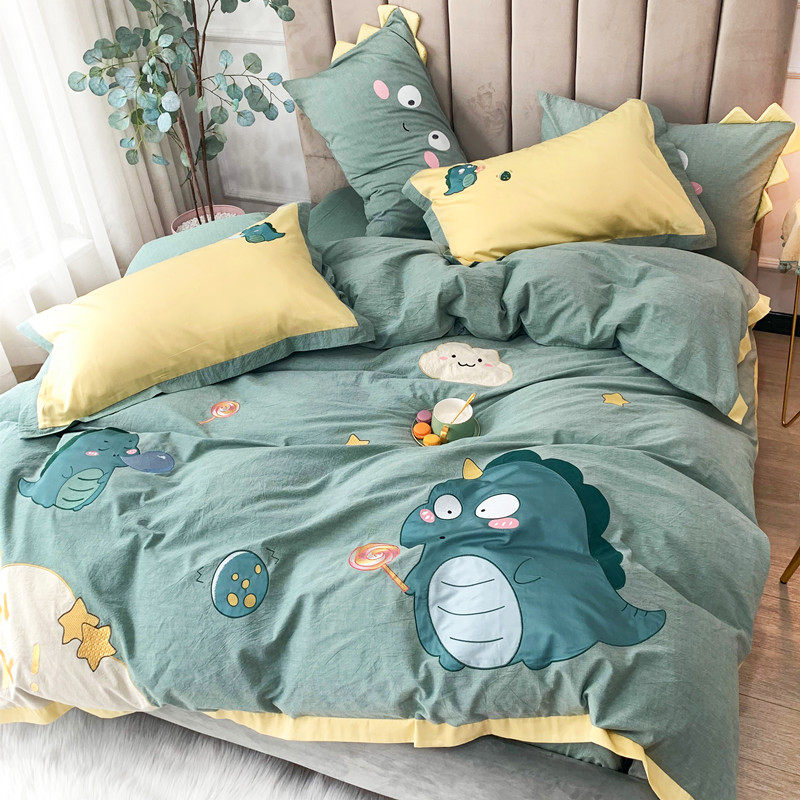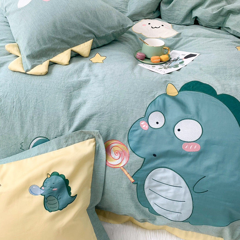Мультяшный хлопковый комплект, динозавр, пластырь, пододеяльник, простыня для приставной кровати, покрывало, 4 предмета