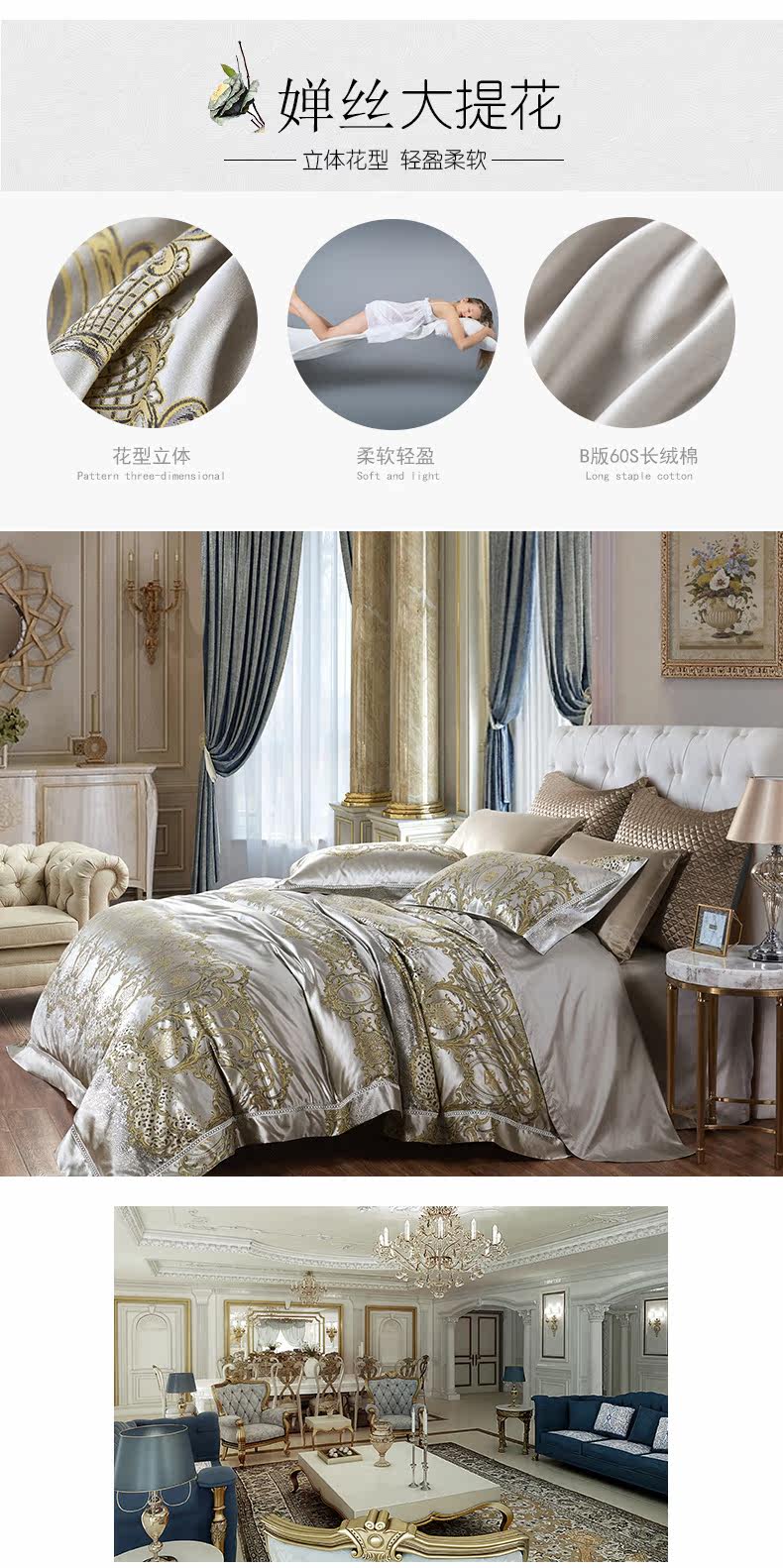 博洋 Комплект, простыня, пододеяльник, роскошное высококлассное покрывало, 4 предмета, европейский стиль, постельные принадлежности