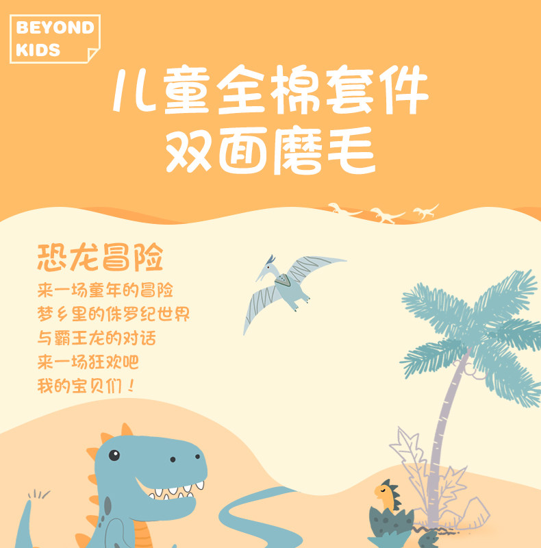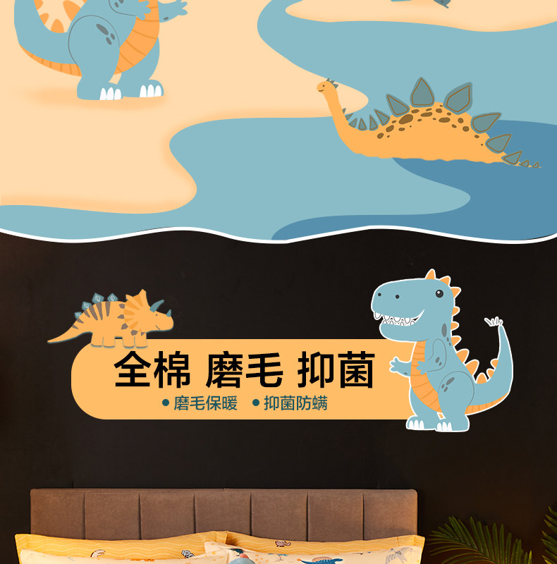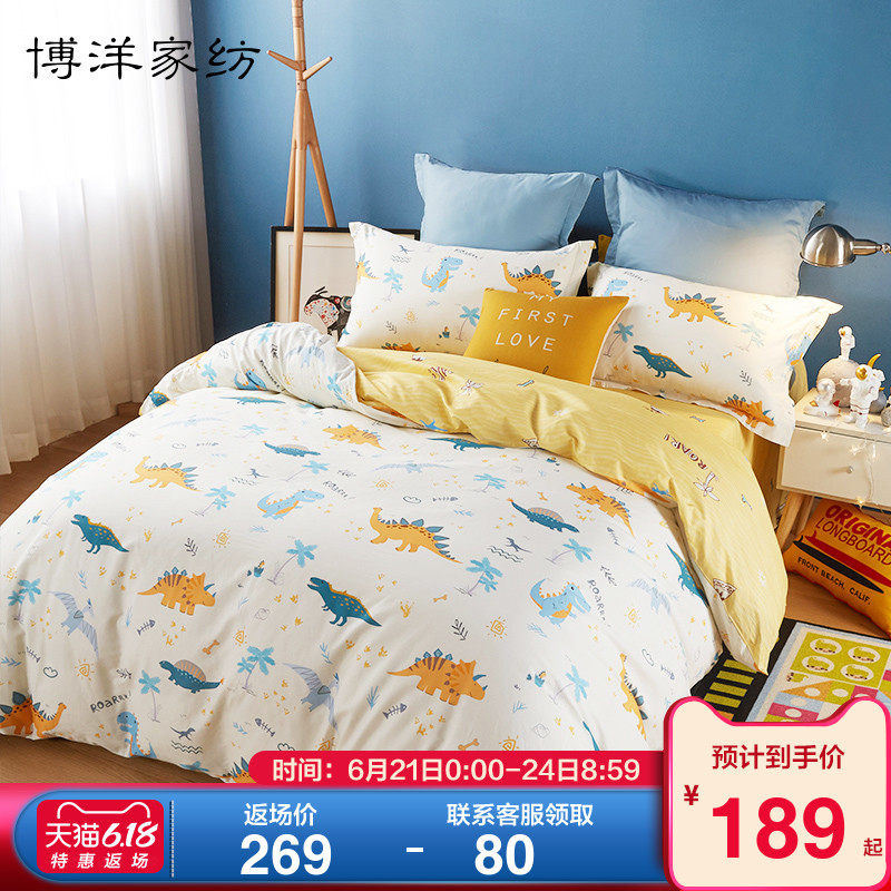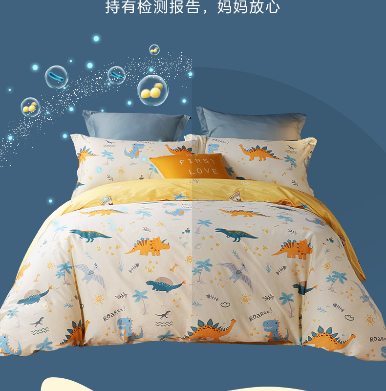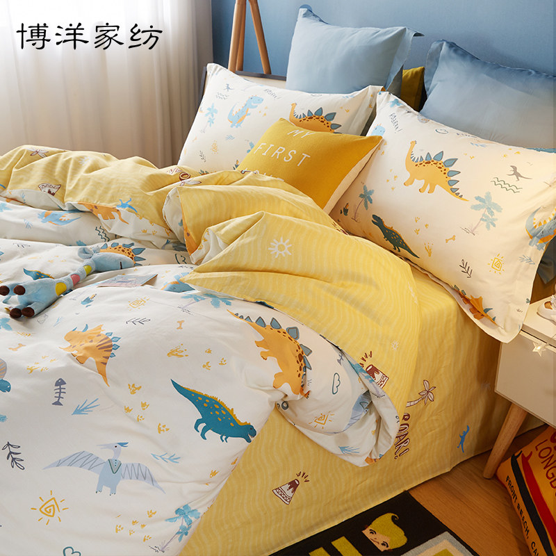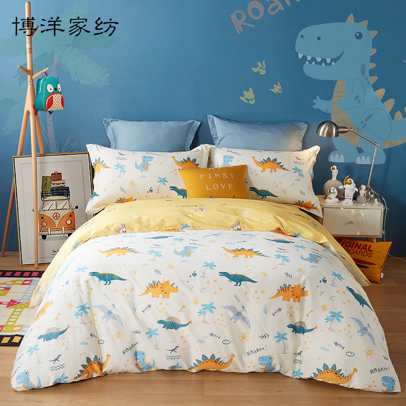博洋 Детский хлопковый комплект, покрывало для мальчиков, пододеяльник, мультяшная простыня, динозавр, 4 предмета, 3 предмета