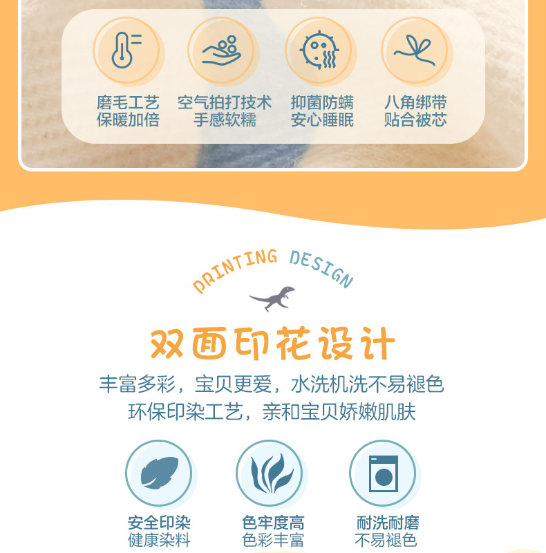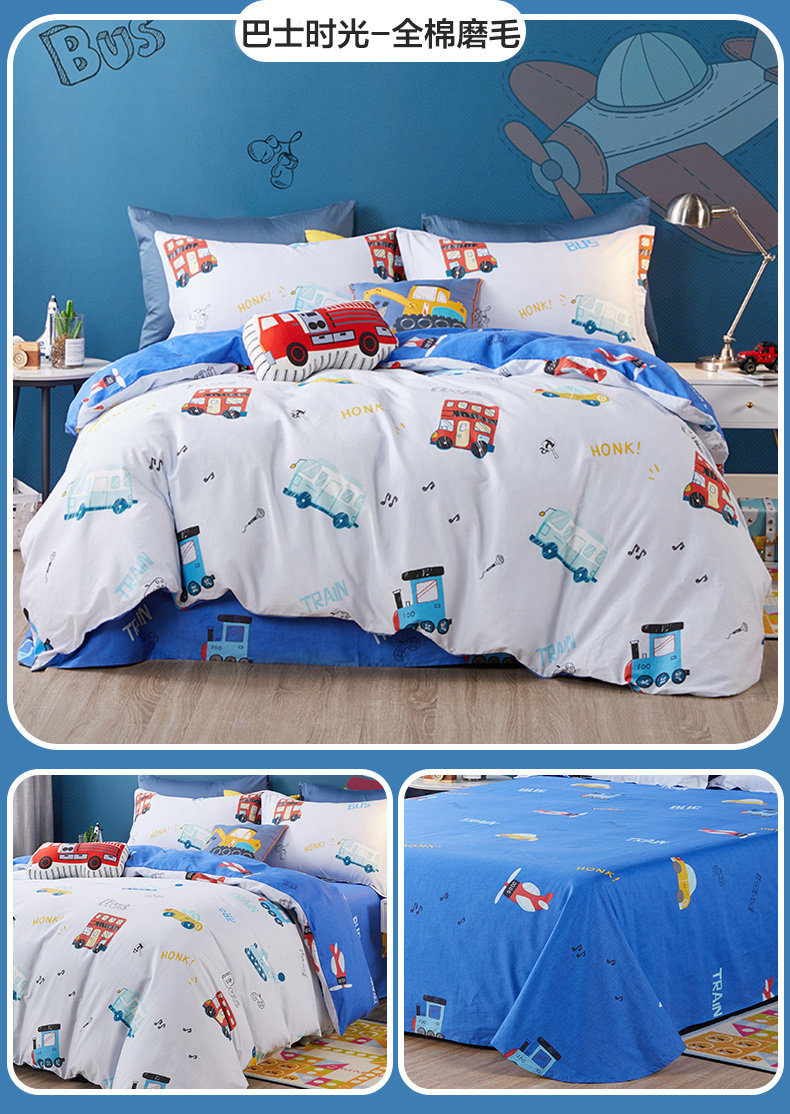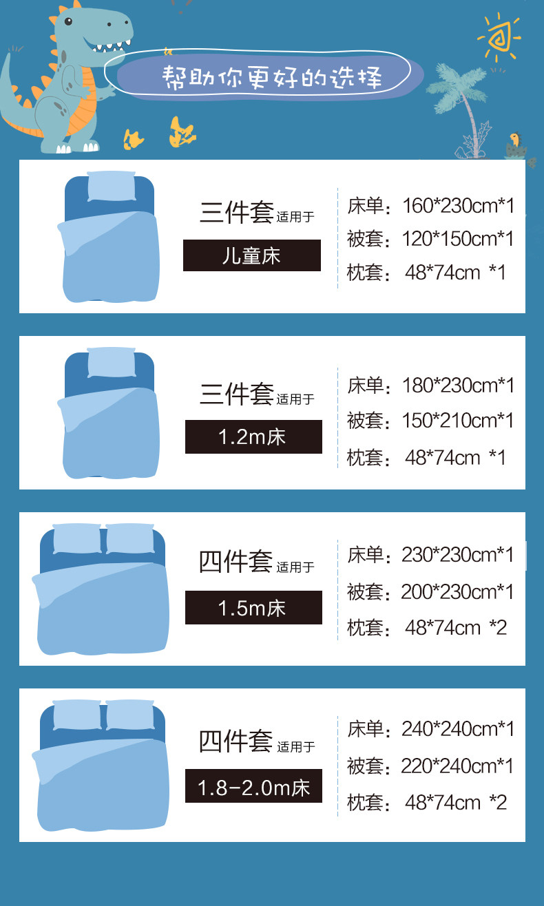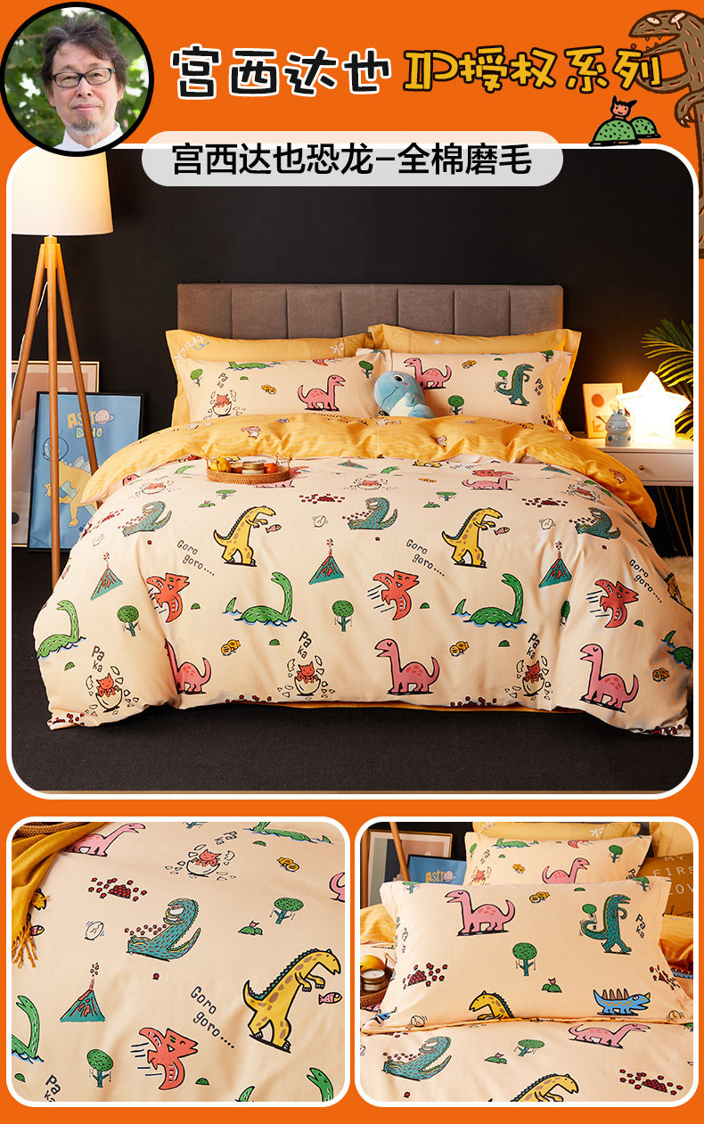 博洋 Детский хлопковый комплект, покрывало для мальчиков, пододеяльник, мультяшная простыня, динозавр, 4 предмета, 3 предмета