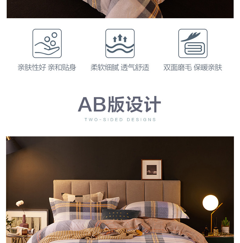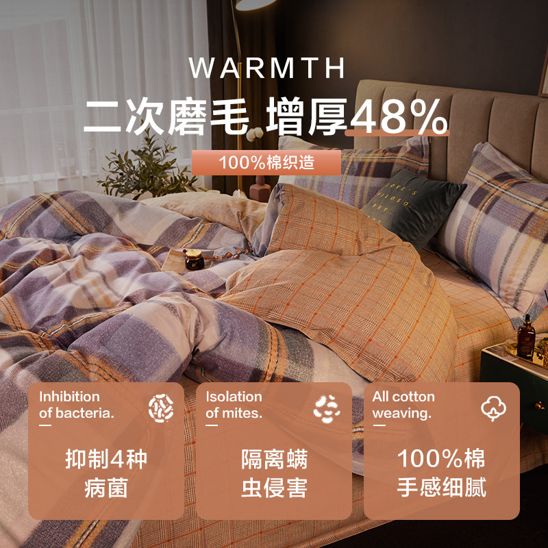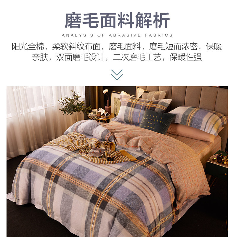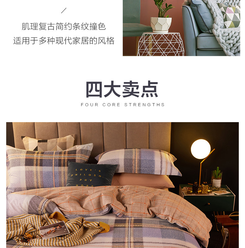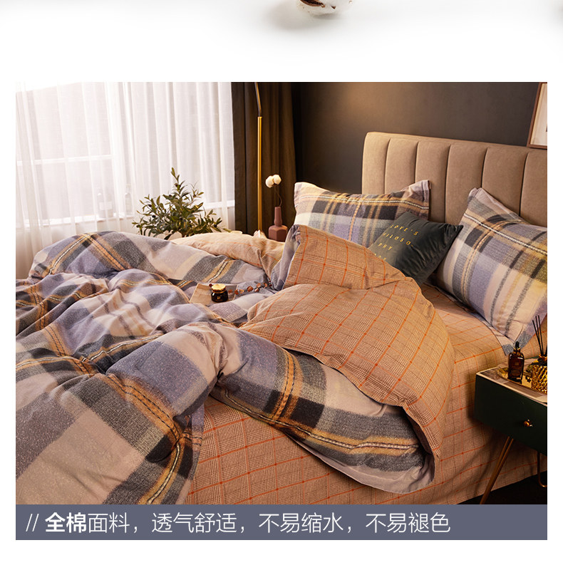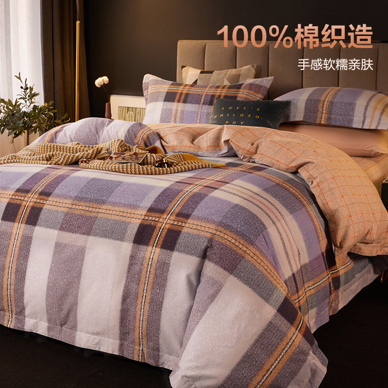 博洋 Двусторонний хлопковый комплект, пододеяльник, покрывало, демисезонная простыня, 4 предмета, увеличенная толщина, простой и элегантный дизайн