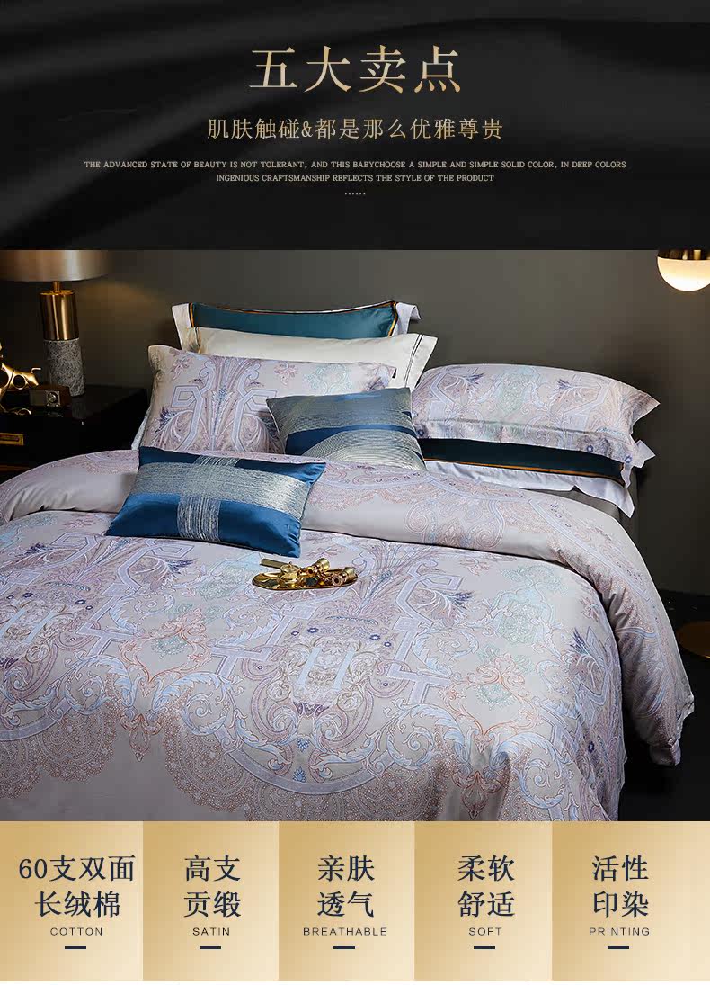 博洋 Хлопковый комплект, покрывало, простыня, летний пододеяльник, 60 шт, 4 предмета, легкий роскошный стиль