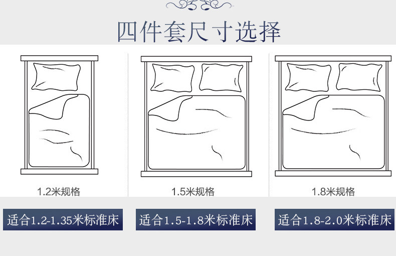 | Ширина кровати: | Четырехэтажный набор применимо к 1,5 -метровым кроватям и рекомендуется с 200*230 одеялом, Набор из четырех частей применим к 1,8-2M-кроватям, с 220*240 ядрами |