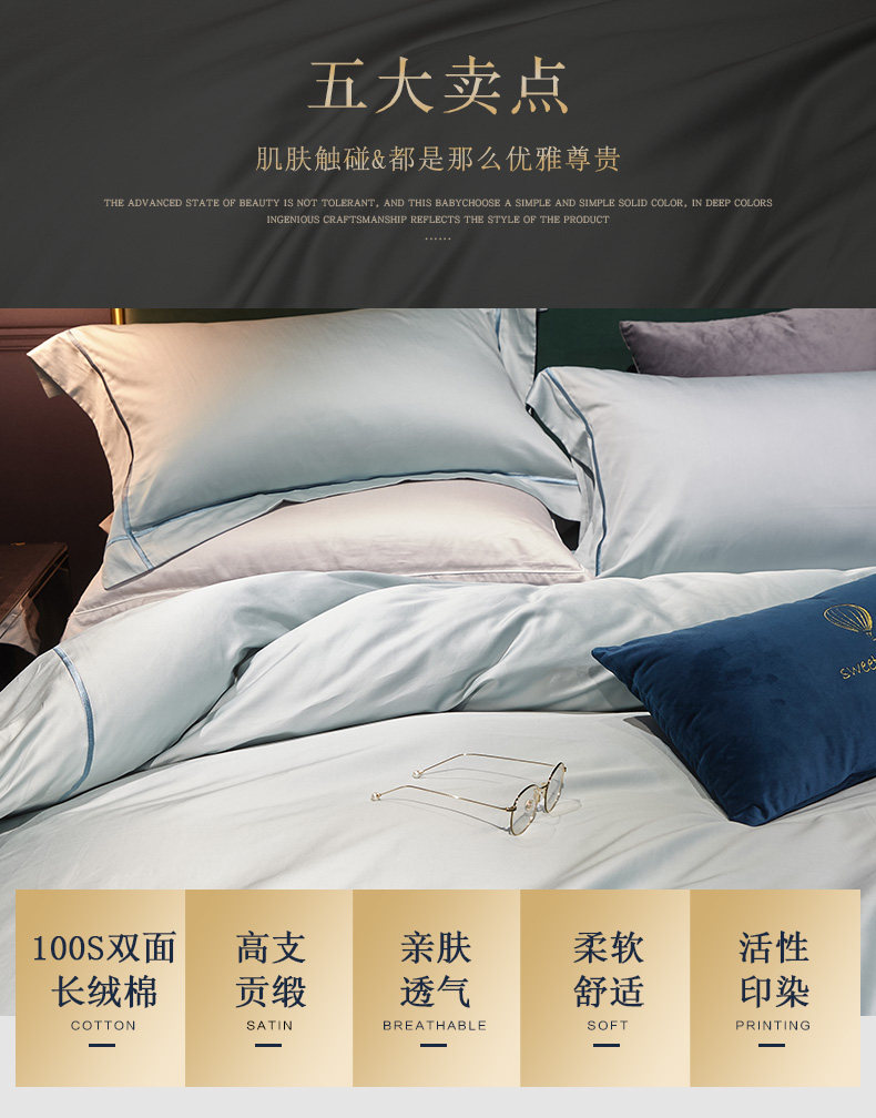 博洋 Хлопковый комплект, пододеяльник, простыня, покрывало, 100 шт, 4 предмета, легкий роскошный стиль, простой и элегантный дизайн