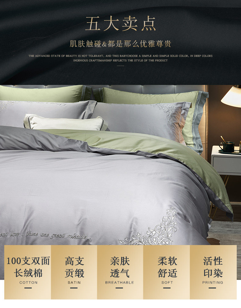 博洋 Хлопковый комплект, простыня, пододеяльник, 100 шт, 4 предмета, легкий роскошный стиль, постельные принадлежности, осенний