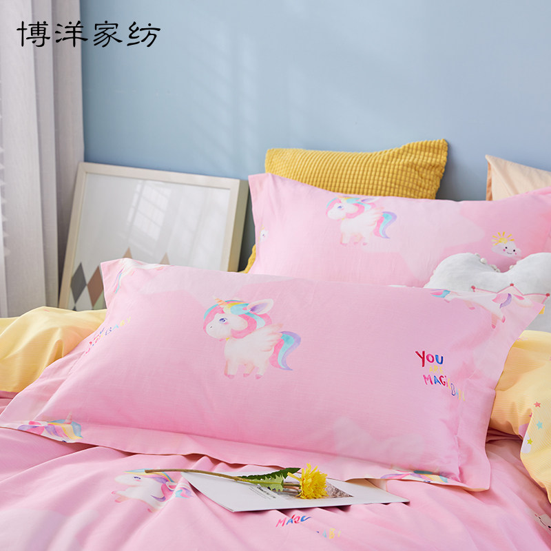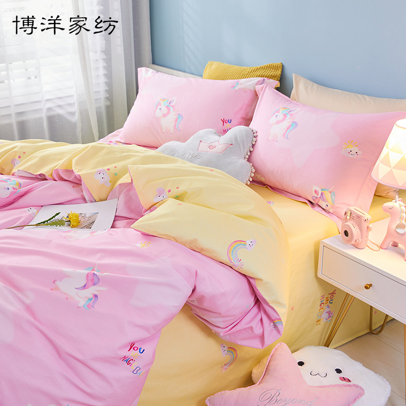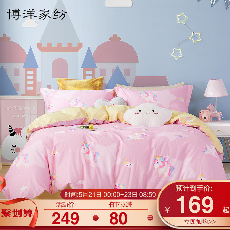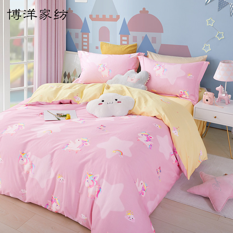 博洋 Детский летний мультяшный комплект, розовая хлопковая простыня, пододеяльник, покрывало, 4 предмета, 3 предмета