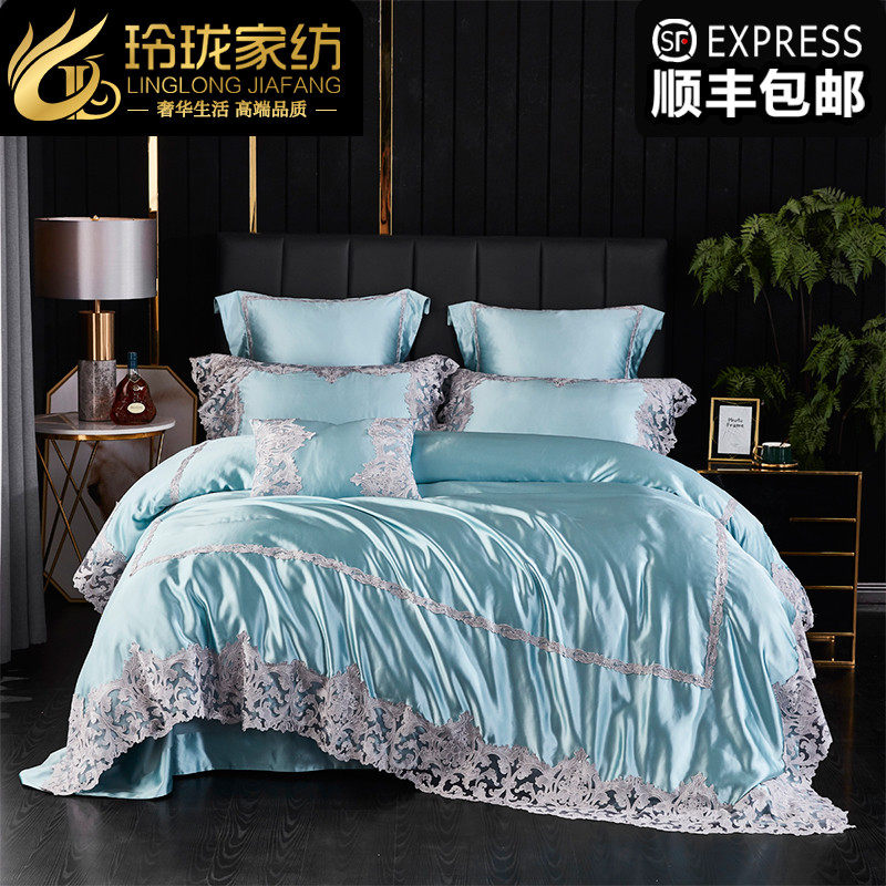 Комплект, элитное покрывало, вилла, пододеяльник для двоих, европейский стиль, в американском стиле, 4 предмета