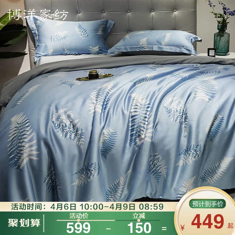 博洋 Комплект, двусторонная кровать, простыня, шелковый пододеяльник, покрывало, 40 шт, 4 предмета