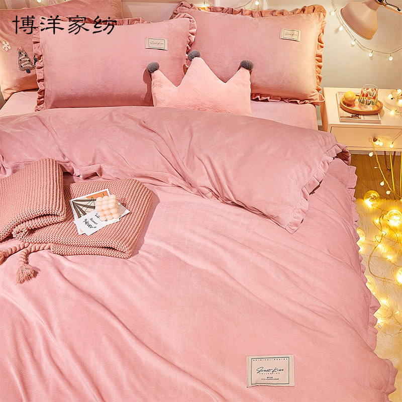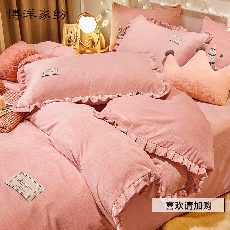 博洋 Зимний комплект, коралловый пододеяльник, покрывало, двусторонная простыня, 4 предмета, увеличенная толщина
