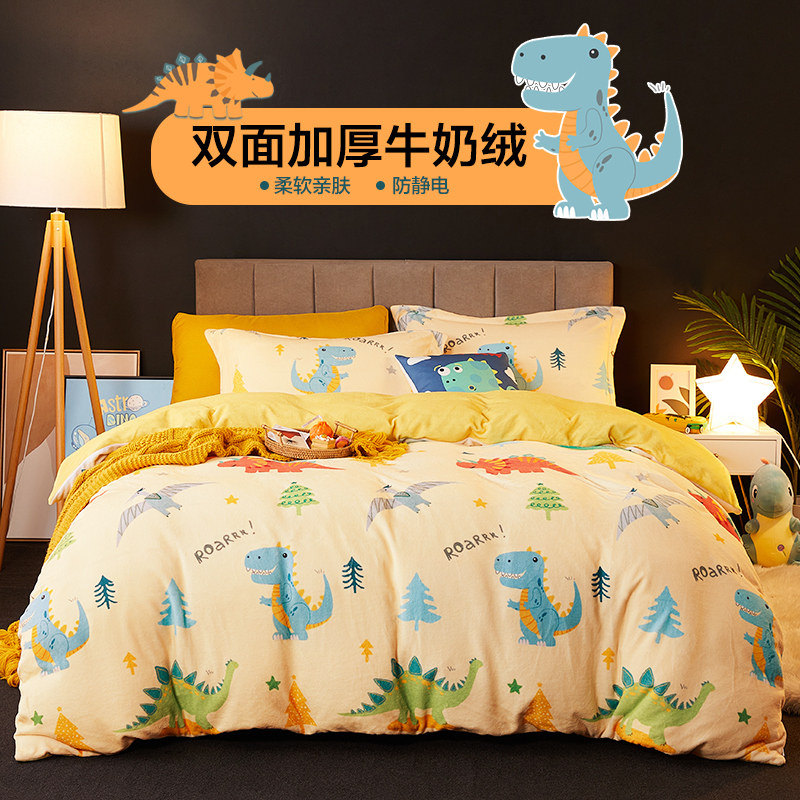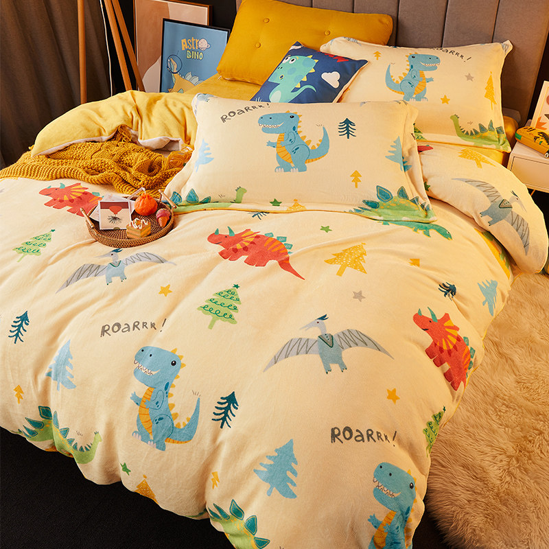 博洋 Зимний детский комплект, мультяшный коралловый двусторонний динозавр, флисовый пододеяльник, 4 предмета, постельные принадлежности, 3 предмета