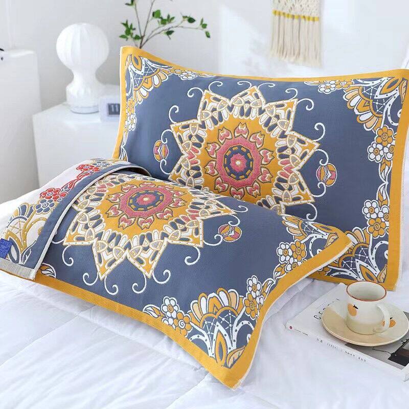 [Пара пары] Толстая 8 -слойная хлопчатобумажная подушка полотенце зашифрованная цветочная пара однодуло