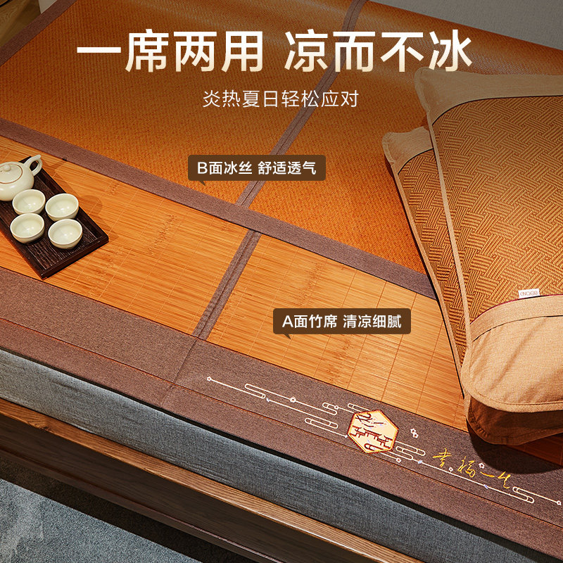 博洋 Вышитый бамбуковый мат. Одиночный набор 1,8M1,5 млн. Одиночный двухсторонний мат карбонизированный складной шелк шелк