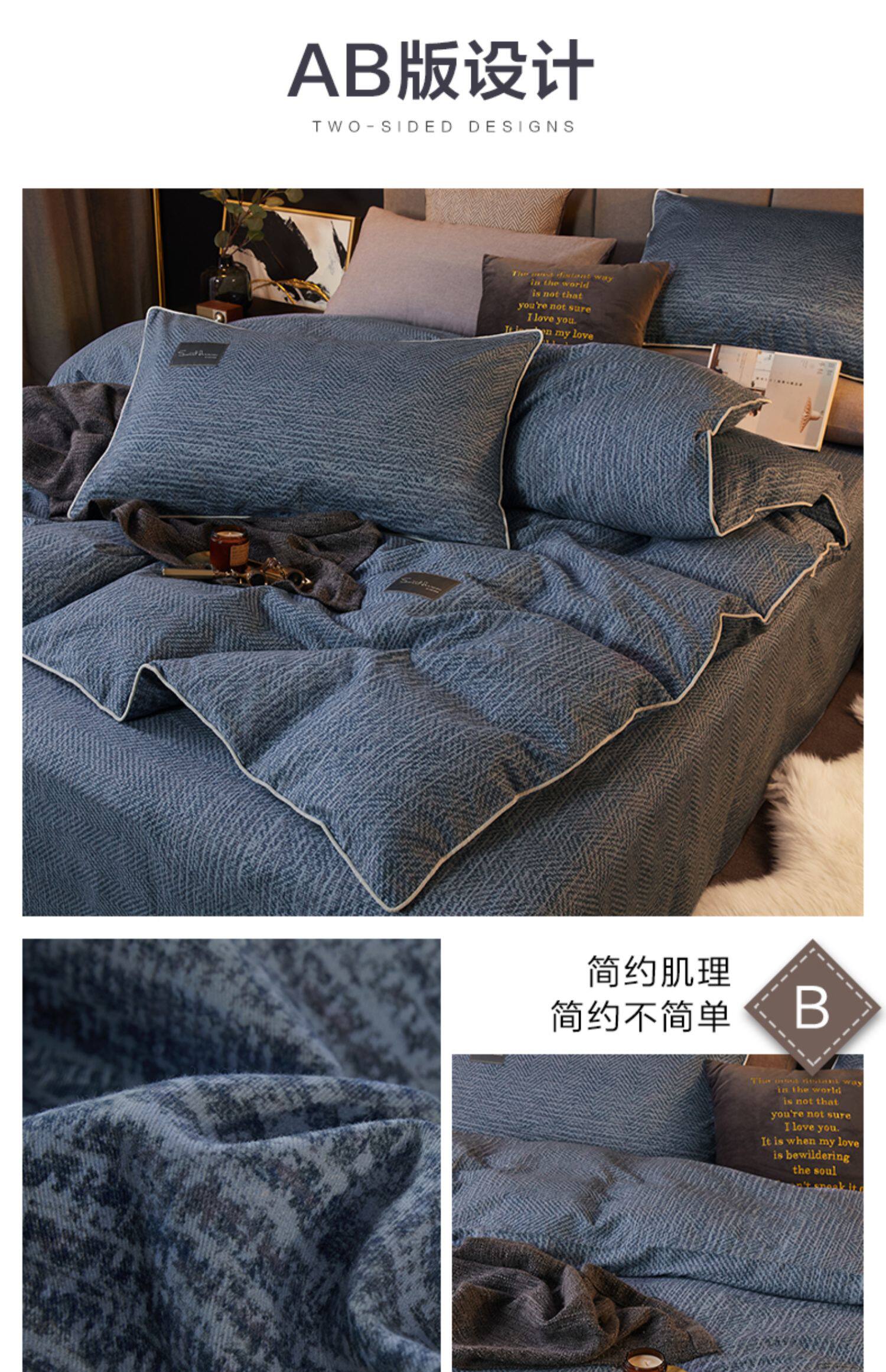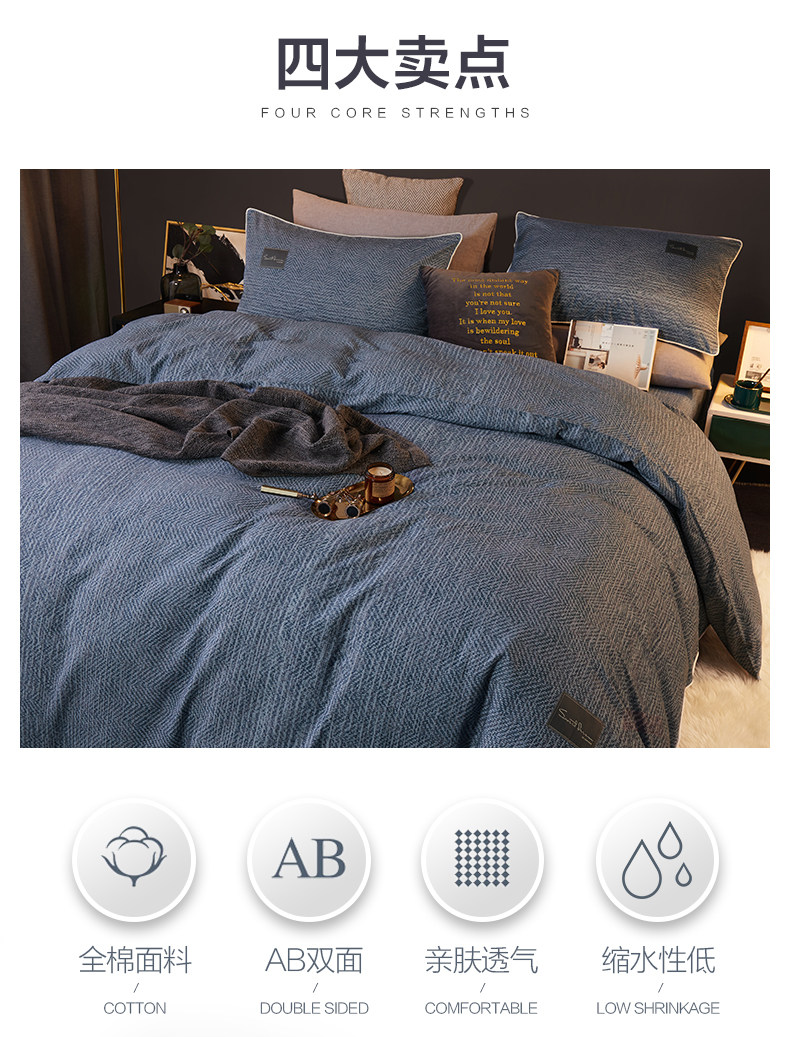 博洋 Хлопковый комплект, простыня, пододеяльник, демисезонное покрывало, 4 предмета, простой и элегантный дизайн, увеличенная толщина, постельные принадлежности