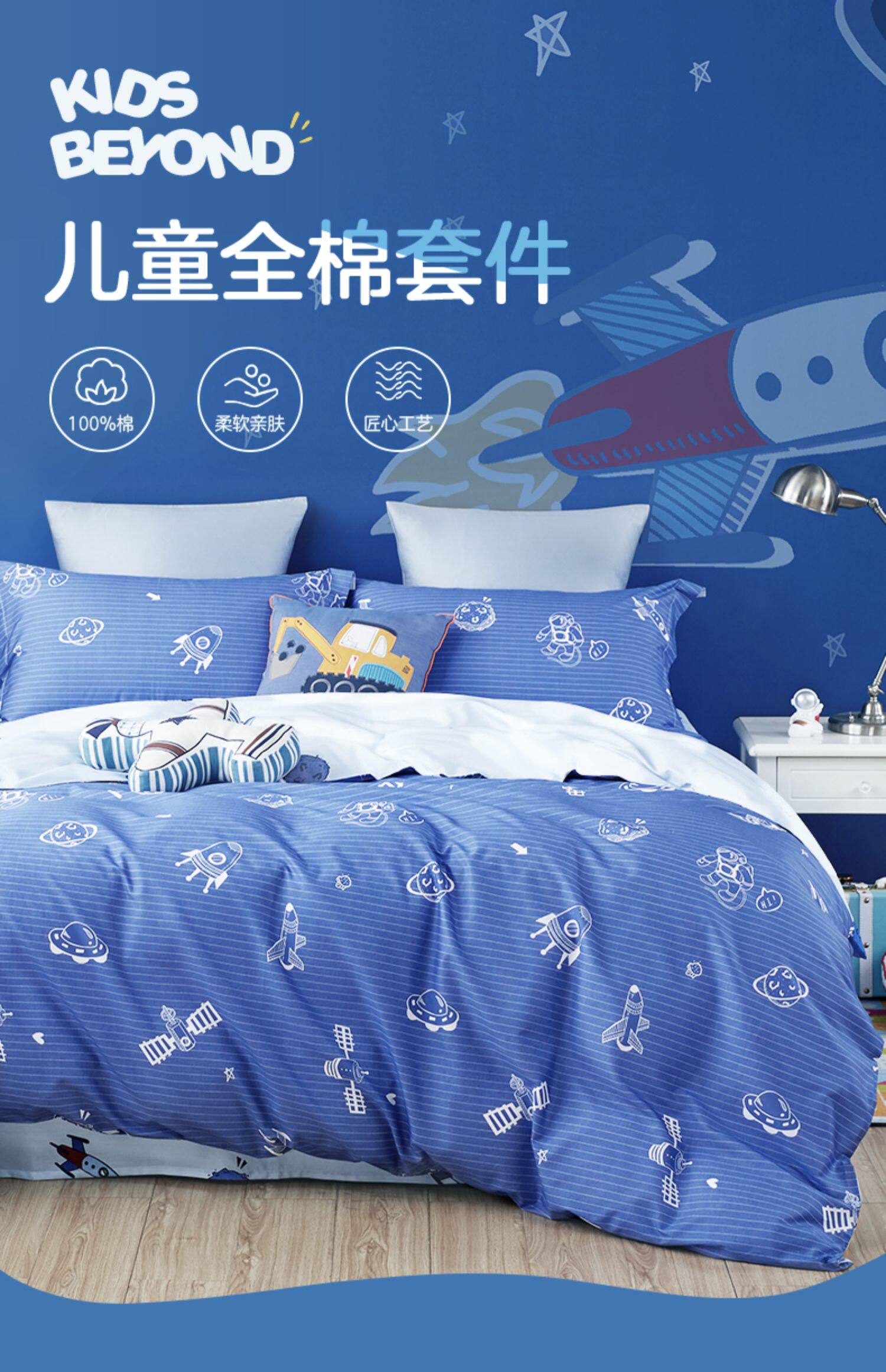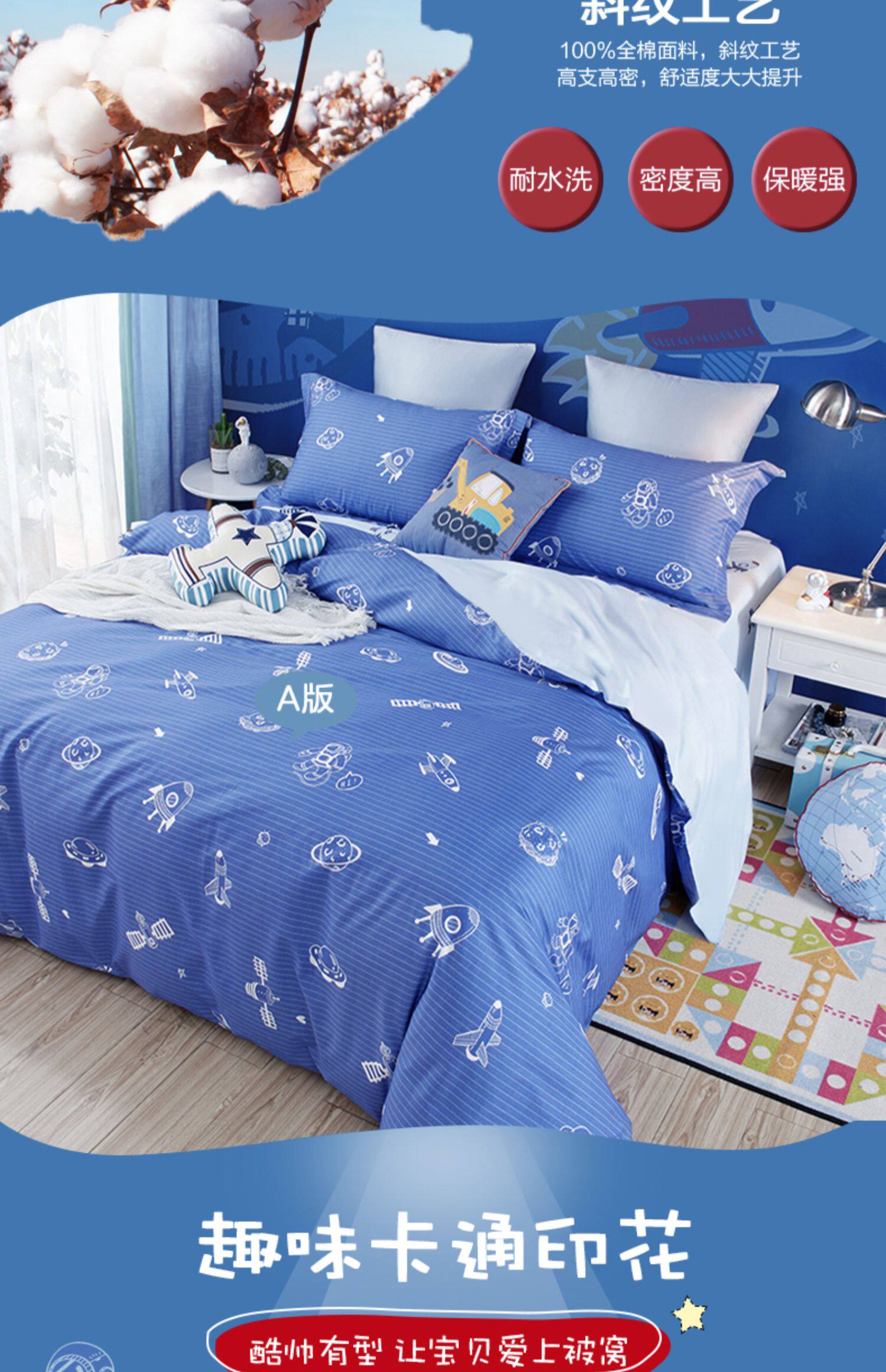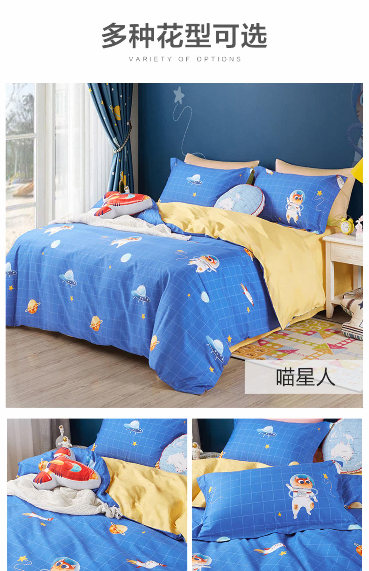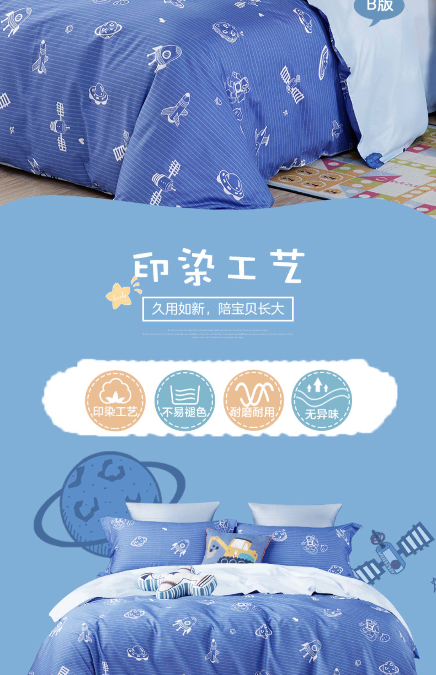 博洋 Детский хлопковый комплект для мальчиков, мультяшный пододеяльник, мультяшная хлопковая простыня для детского сада, 4 предмета, постельные принадлежности, 3 предмета