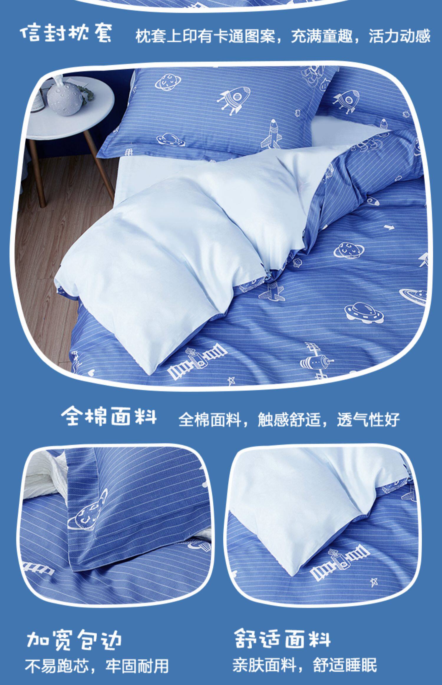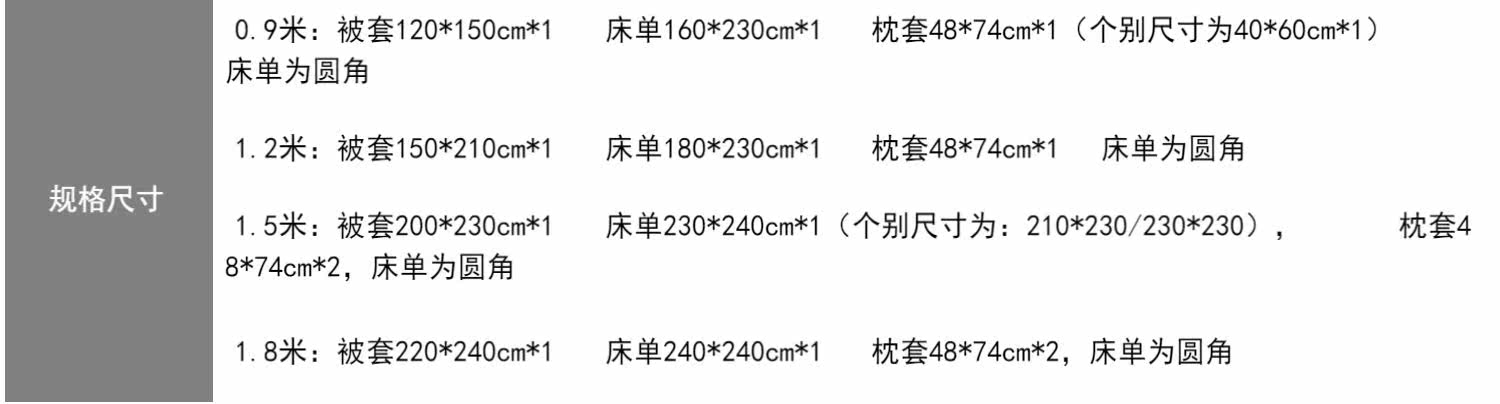| Ширина кровати: | Три -части набор подходит для детских кроватей, чтобы соответствовать 120*150 ядра, Три -набор для кровати применимо к 1,2 млн. С 150*210 стеганым одеялом, Четырехэтажный набор применимо к 1,5 -метровым кроватям и рекомендуется с 200*230 одеялом |