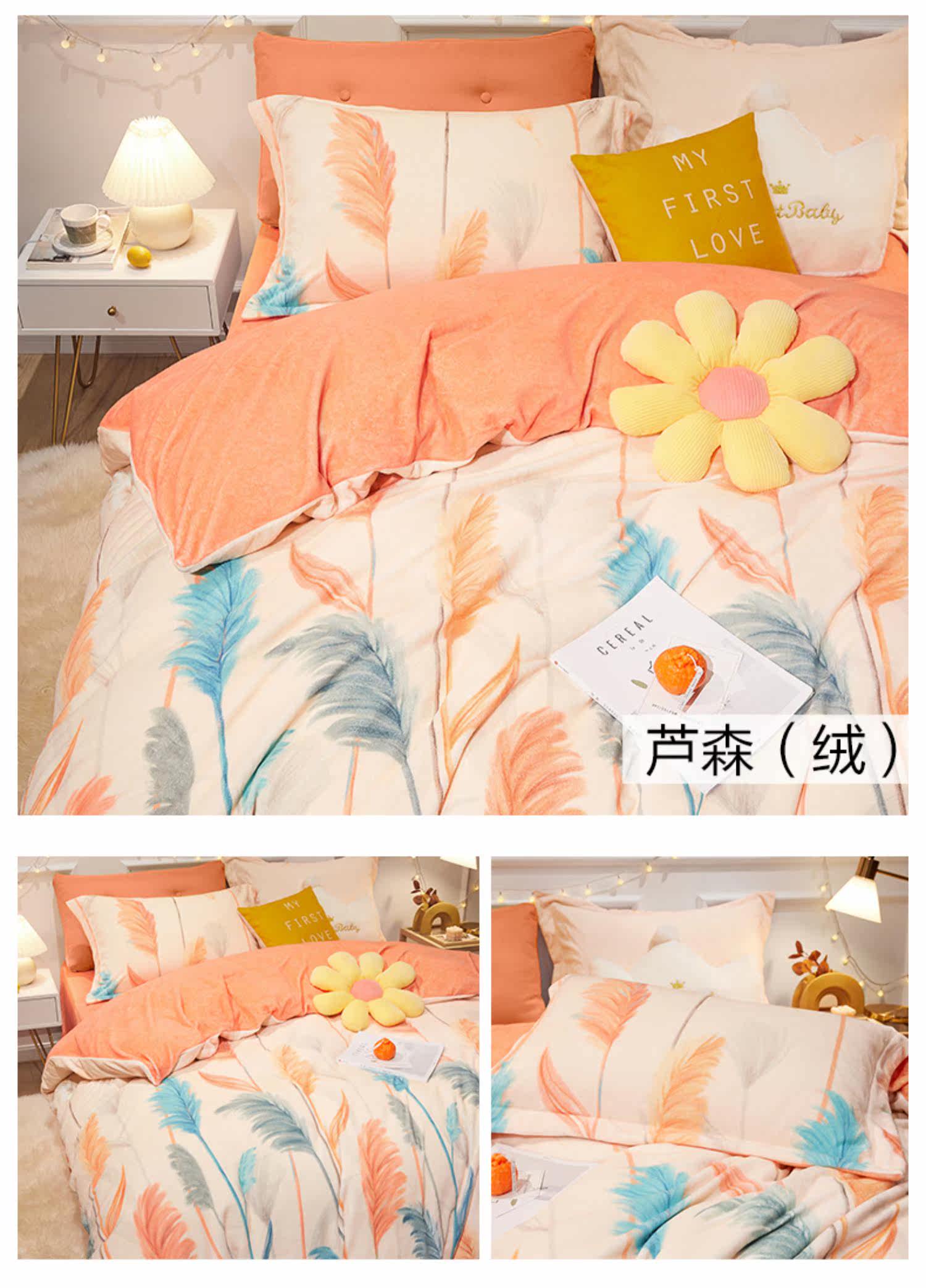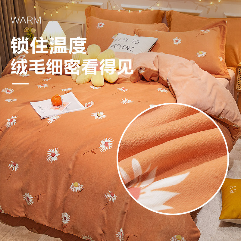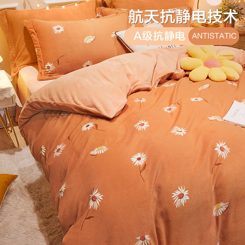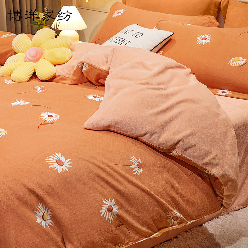 Коралловый комплект, фланелевое покрывало, зимняя простыня, двусторонний пододеяльник, 4 предмета