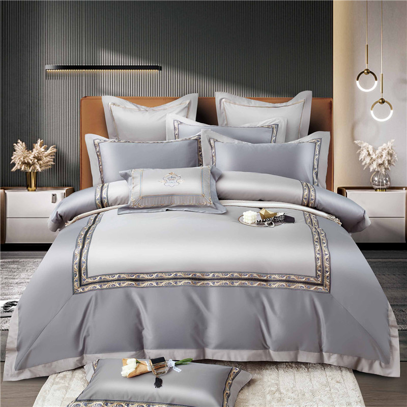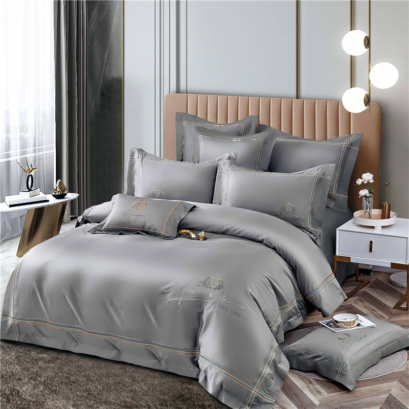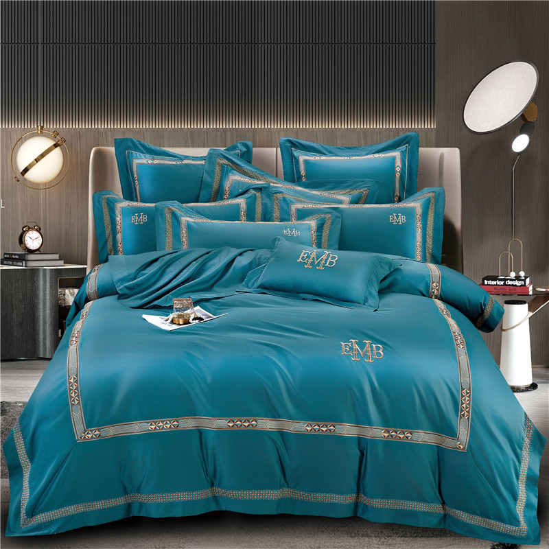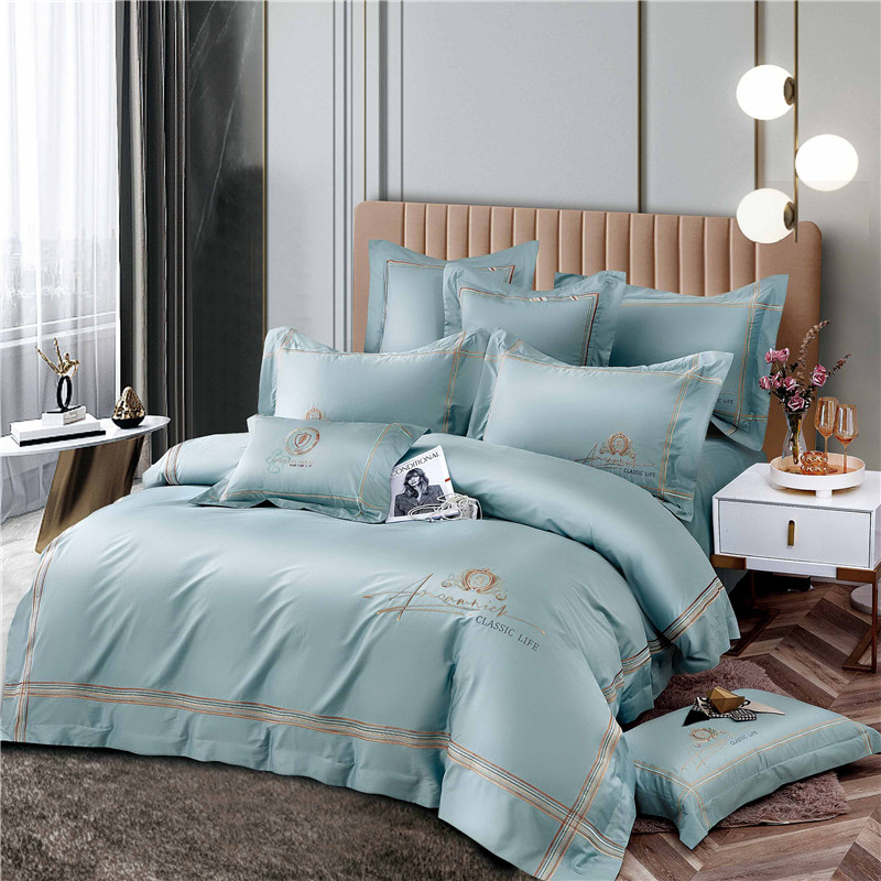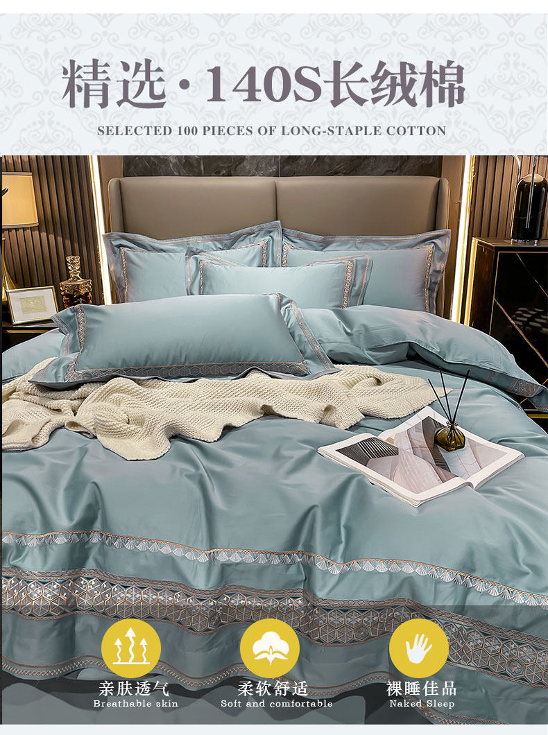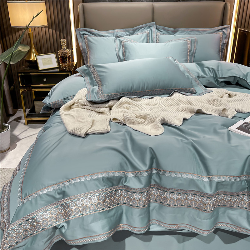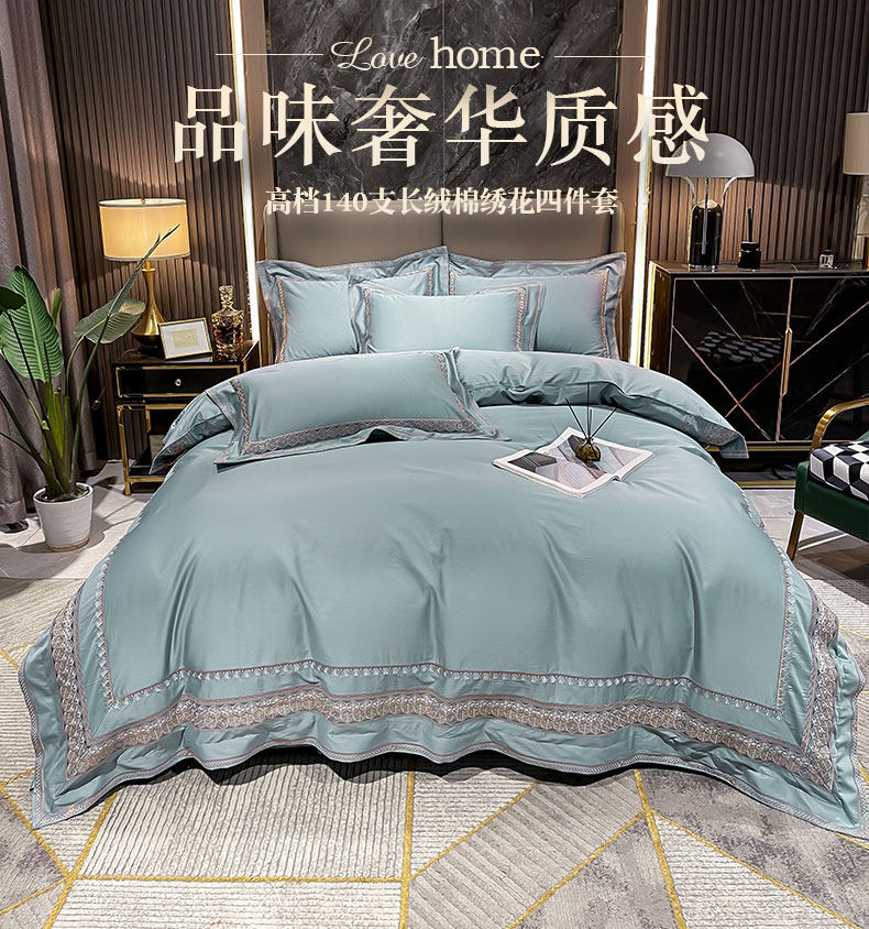 Хлопковый комплект, простыня, пододеяльник, высококлассное покрывало, 100 шт, 4 предмета, простой и элегантный дизайн, легкий роскошный стиль, с вышивкой