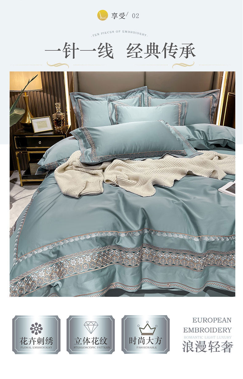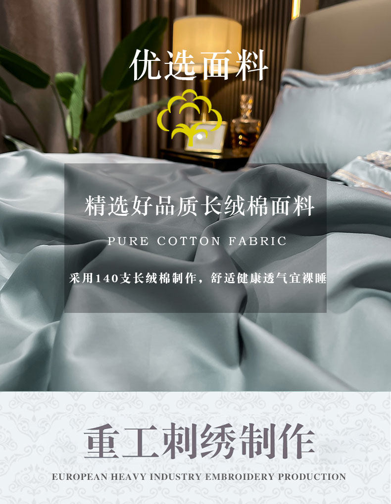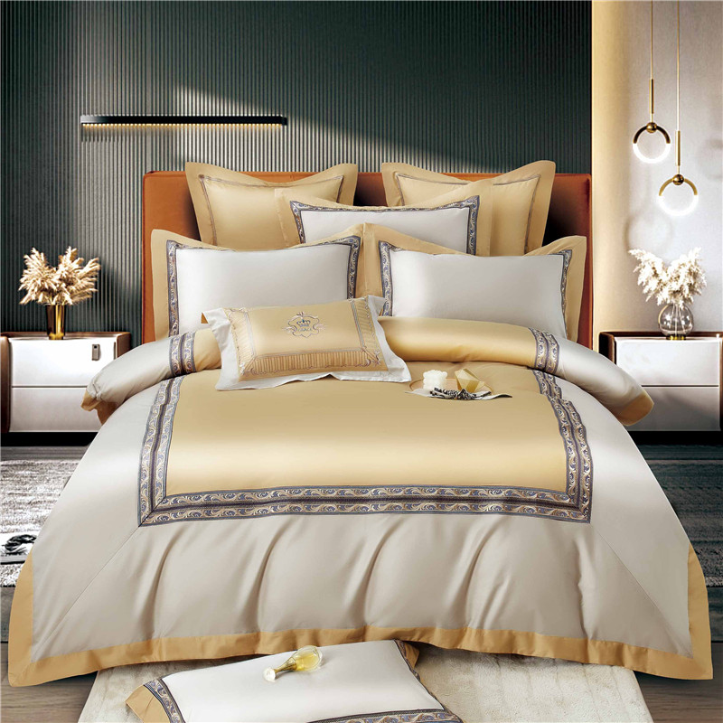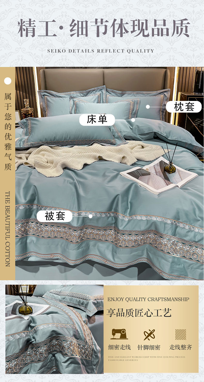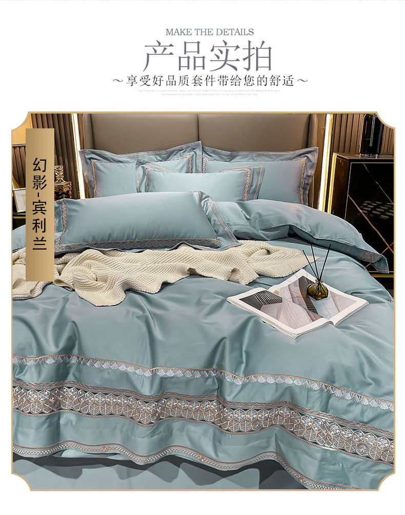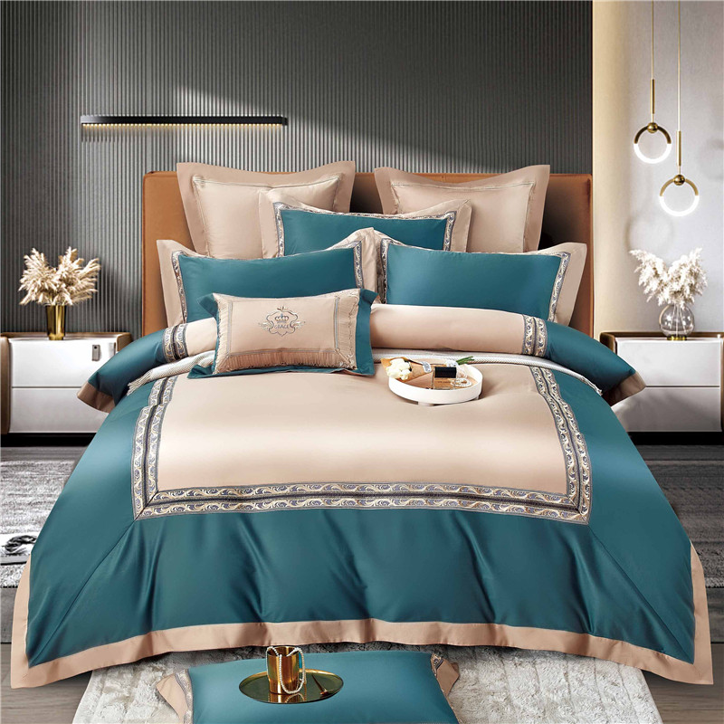 Хлопковый комплект, простыня, пододеяльник, высококлассное покрывало, 100 шт, 4 предмета, простой и элегантный дизайн, легкий роскошный стиль, с вышивкой