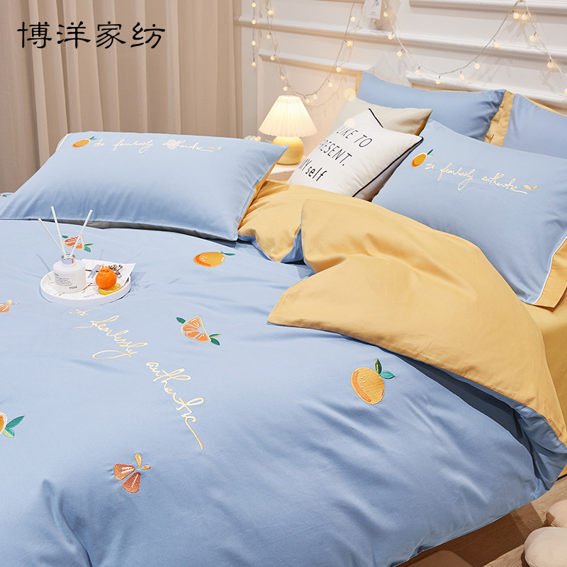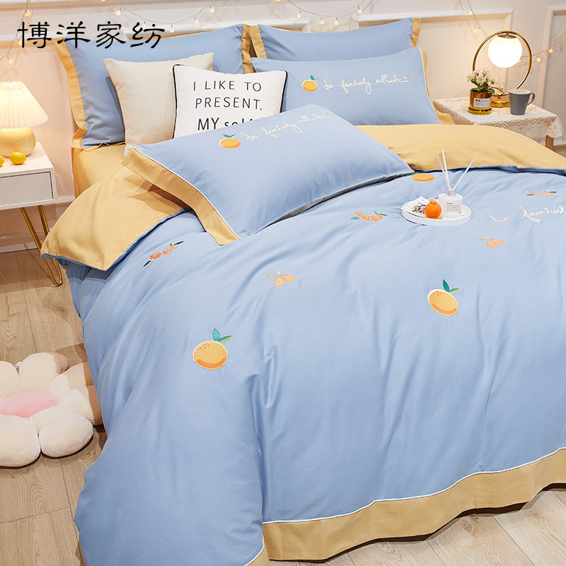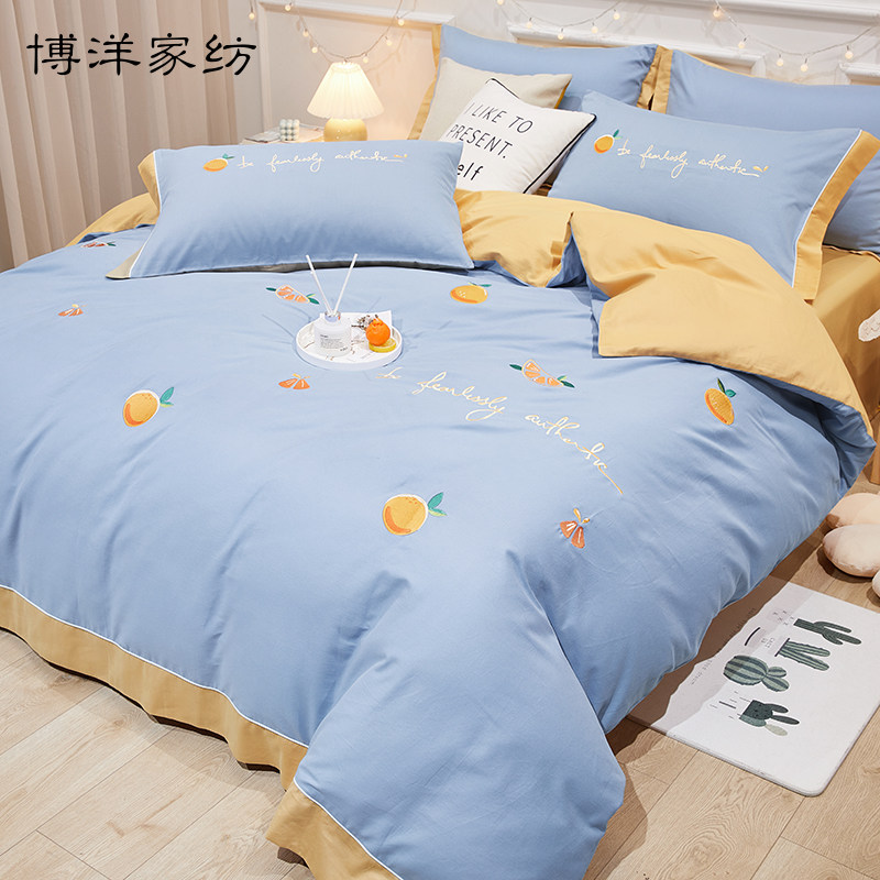 Хлопковый комплект, хлопковая милая простыня, покрывало, демисезонный пододеяльник, 4 предмета, 3 предмета