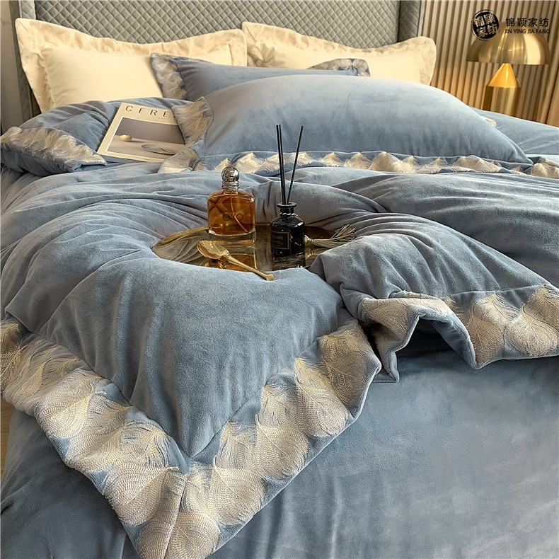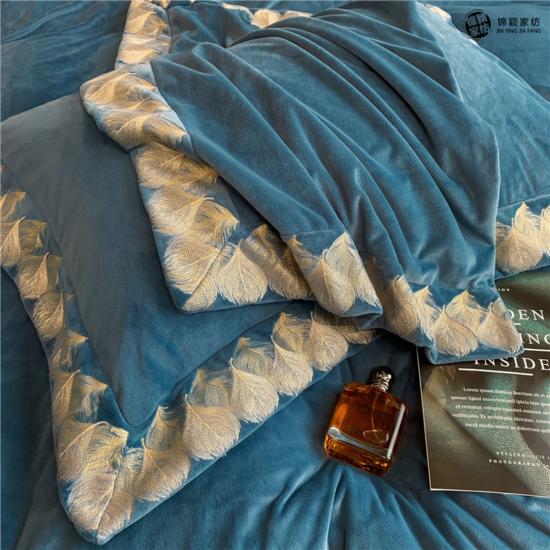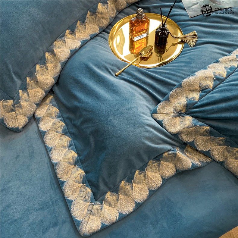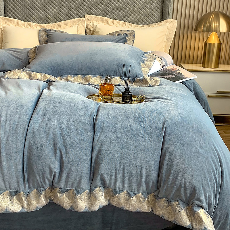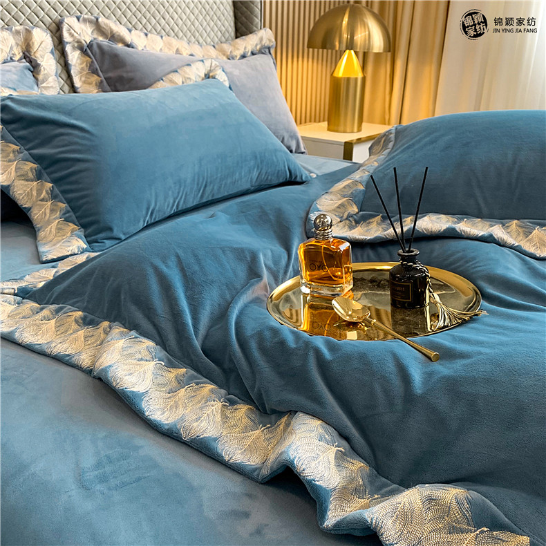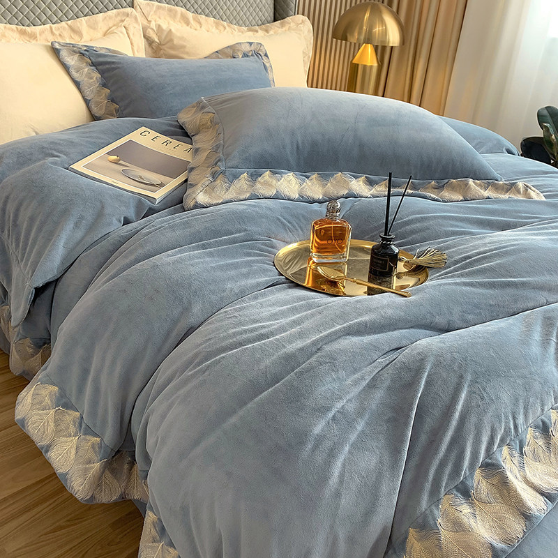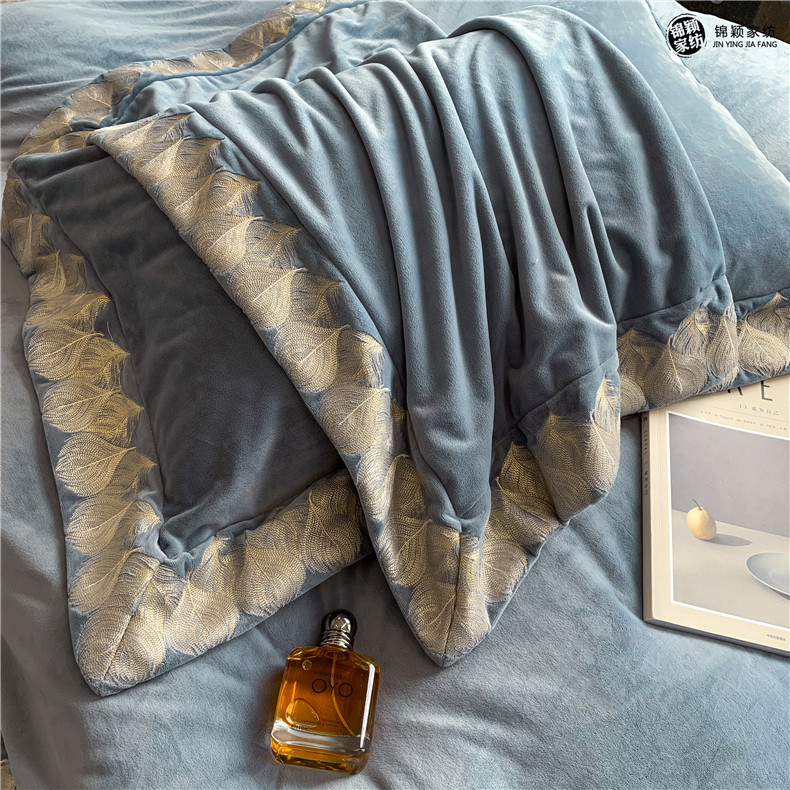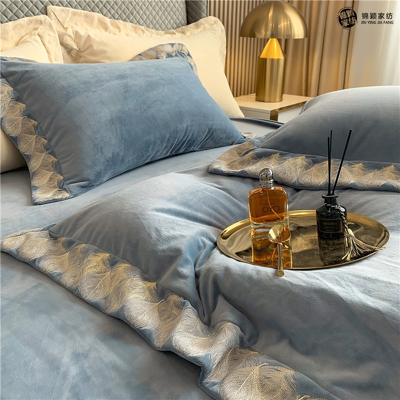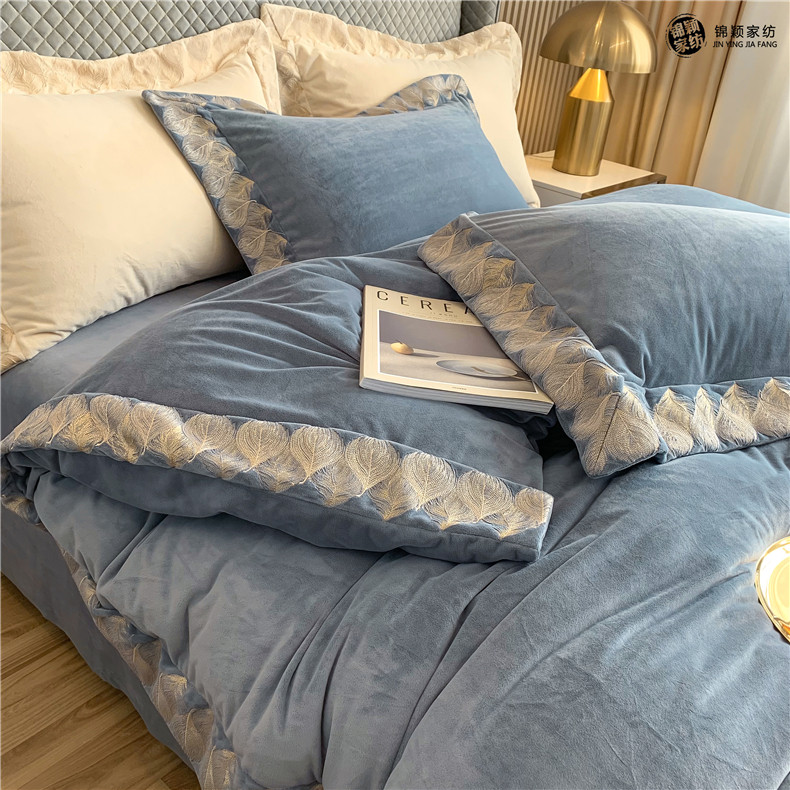 Демисезонные двусторонние бархатные джинсы с начесом, комплект, удерживающий тепло пододеяльник, простыня, 4 предмета, европейский стиль, с вышивкой, 1.8м, постельные принадлежности