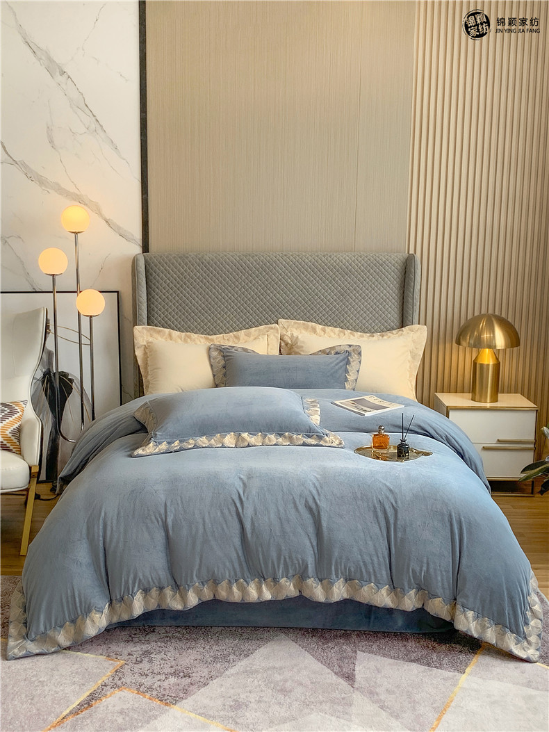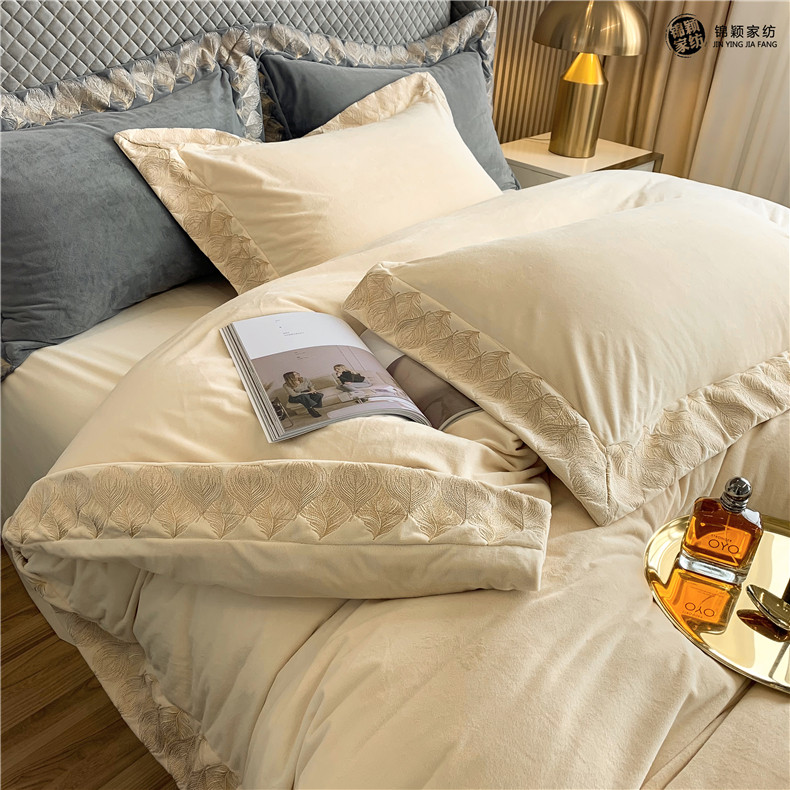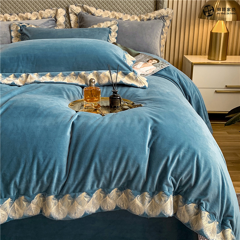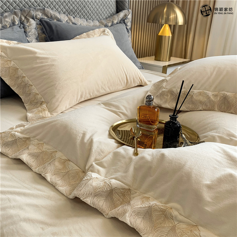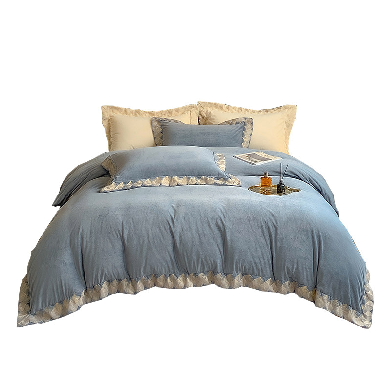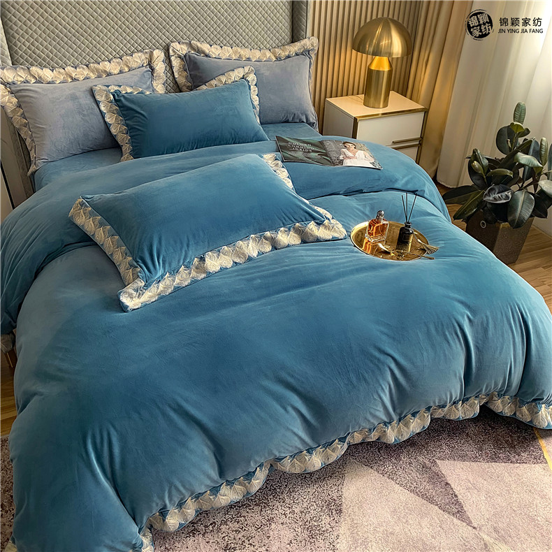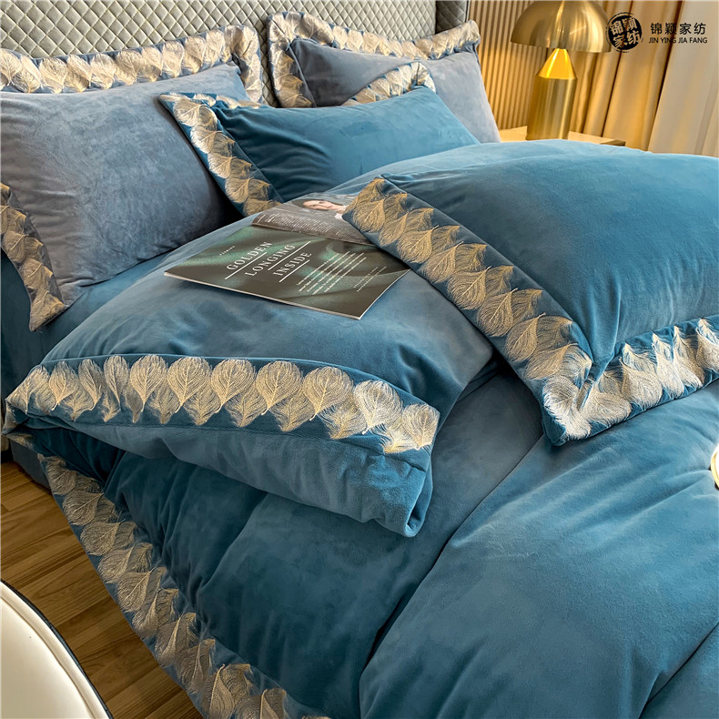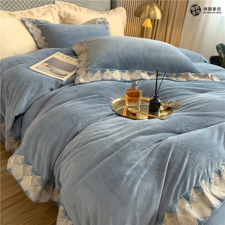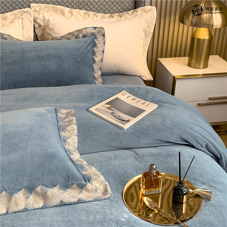 Демисезонные двусторонние бархатные джинсы с начесом, комплект, удерживающий тепло пододеяльник, простыня, 4 предмета, европейский стиль, с вышивкой, 1.8м, постельные принадлежности