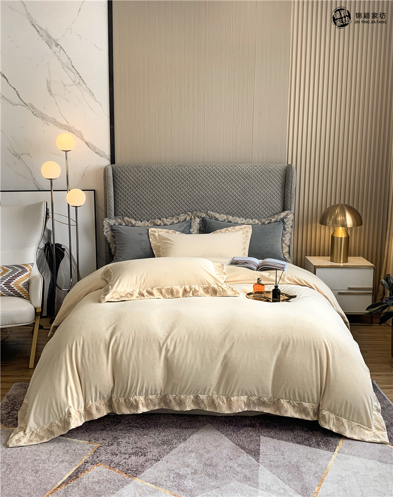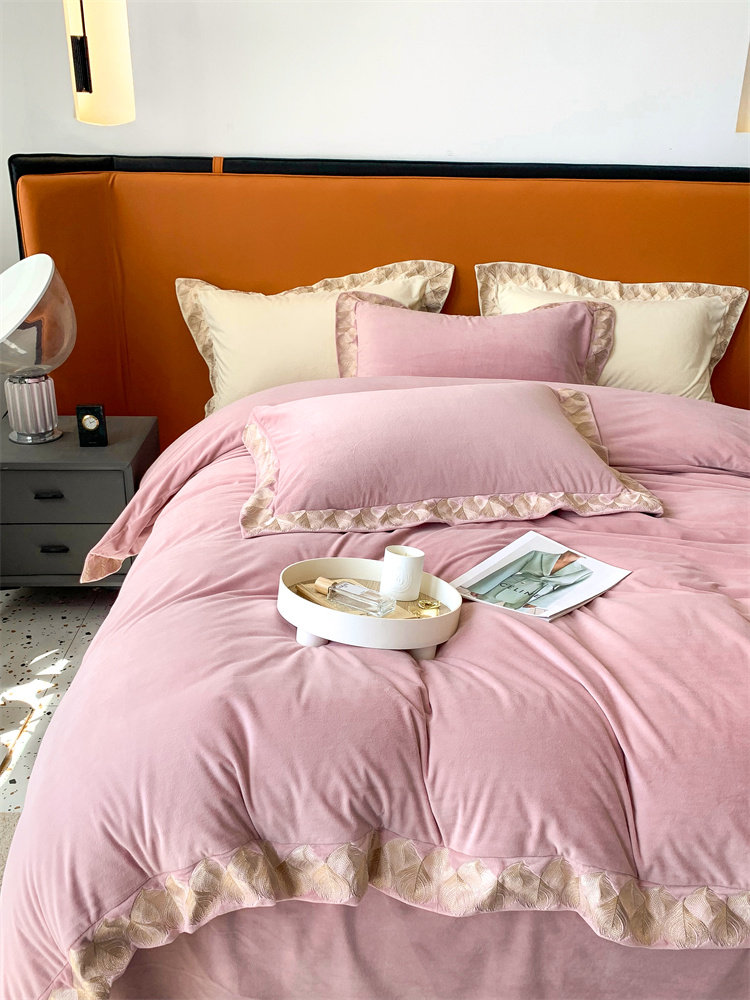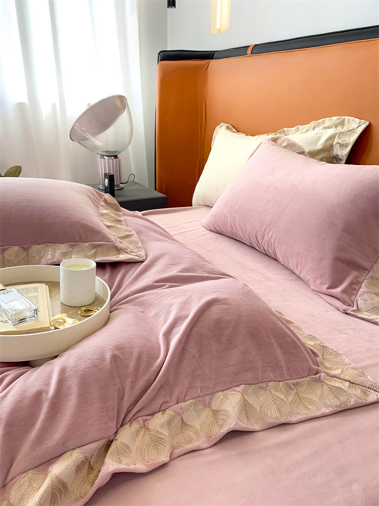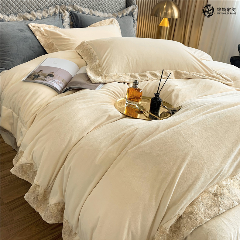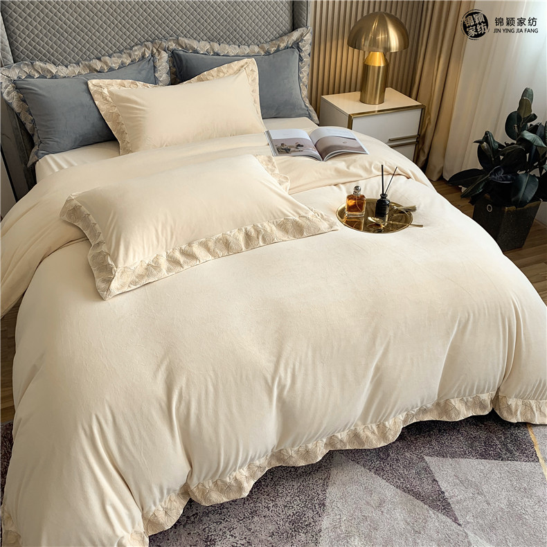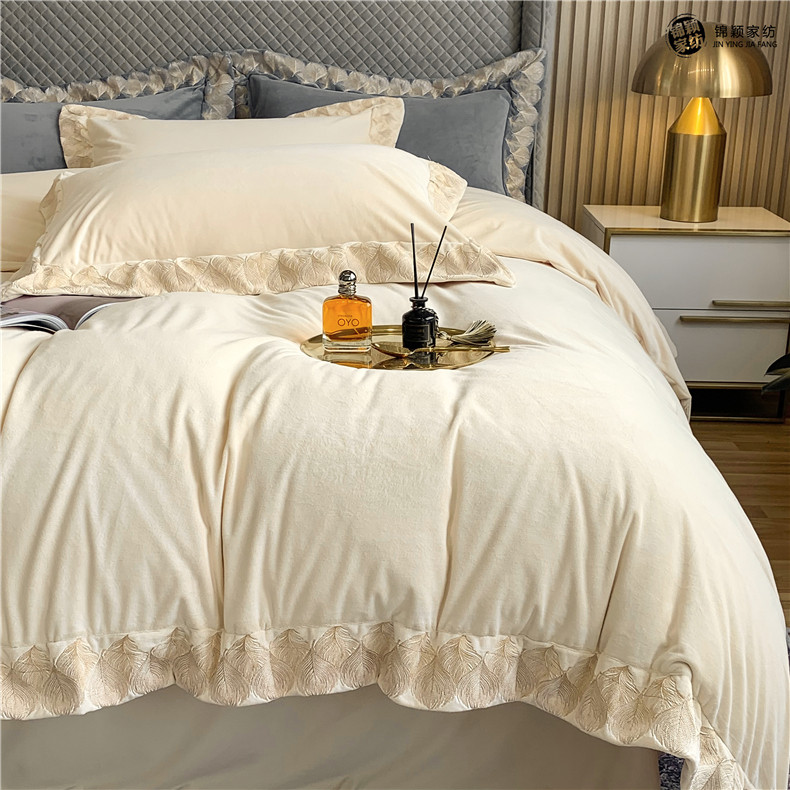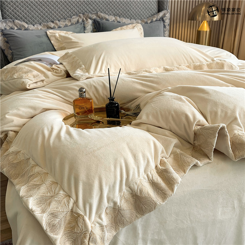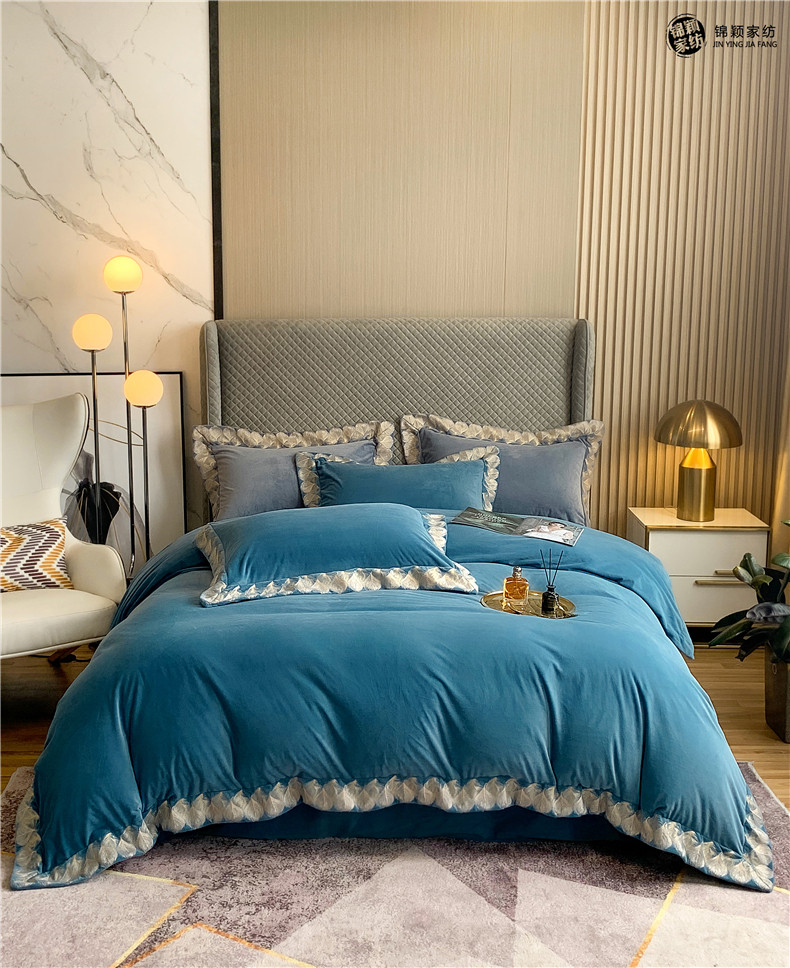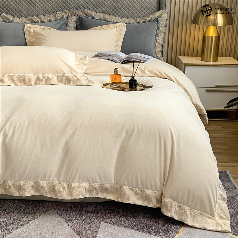 Демисезонные двусторонние бархатные джинсы с начесом, комплект, удерживающий тепло пододеяльник, простыня, 4 предмета, европейский стиль, с вышивкой, 1.8м, постельные принадлежности