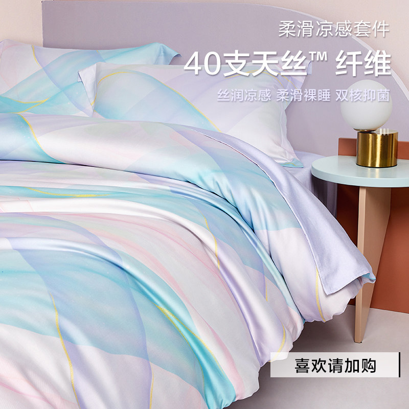 Двусторонний шелковый летний комплект, простыня, пододеяльник, 40 шт, 4 предмета, легкий роскошный стиль, постельные принадлежности